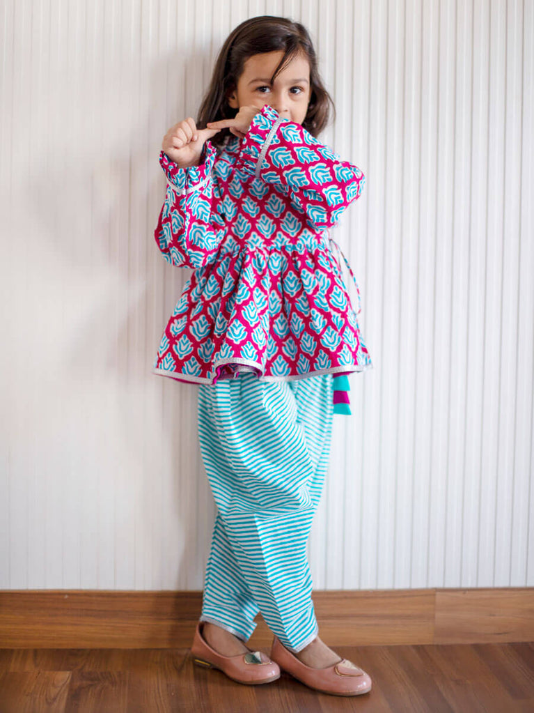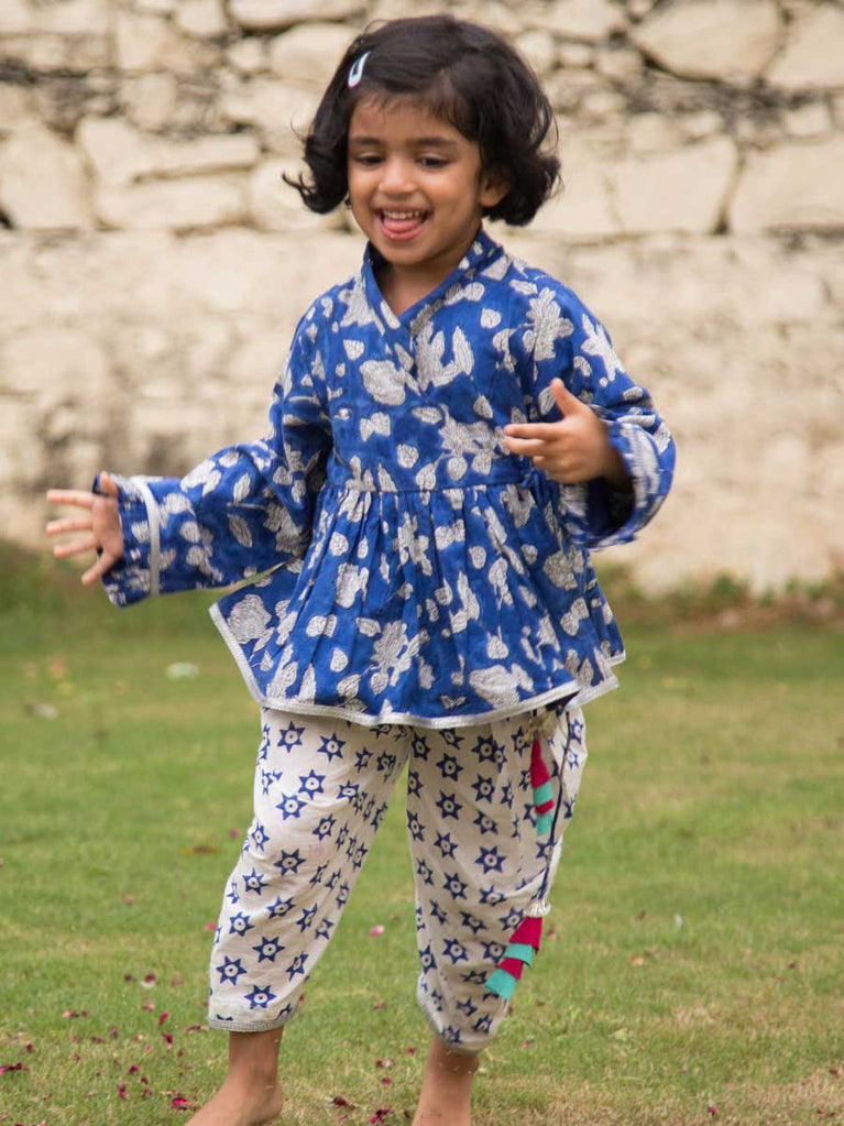 Set of 2 - Bahaar Block Printed Cotton Angrakha Dhoti Set