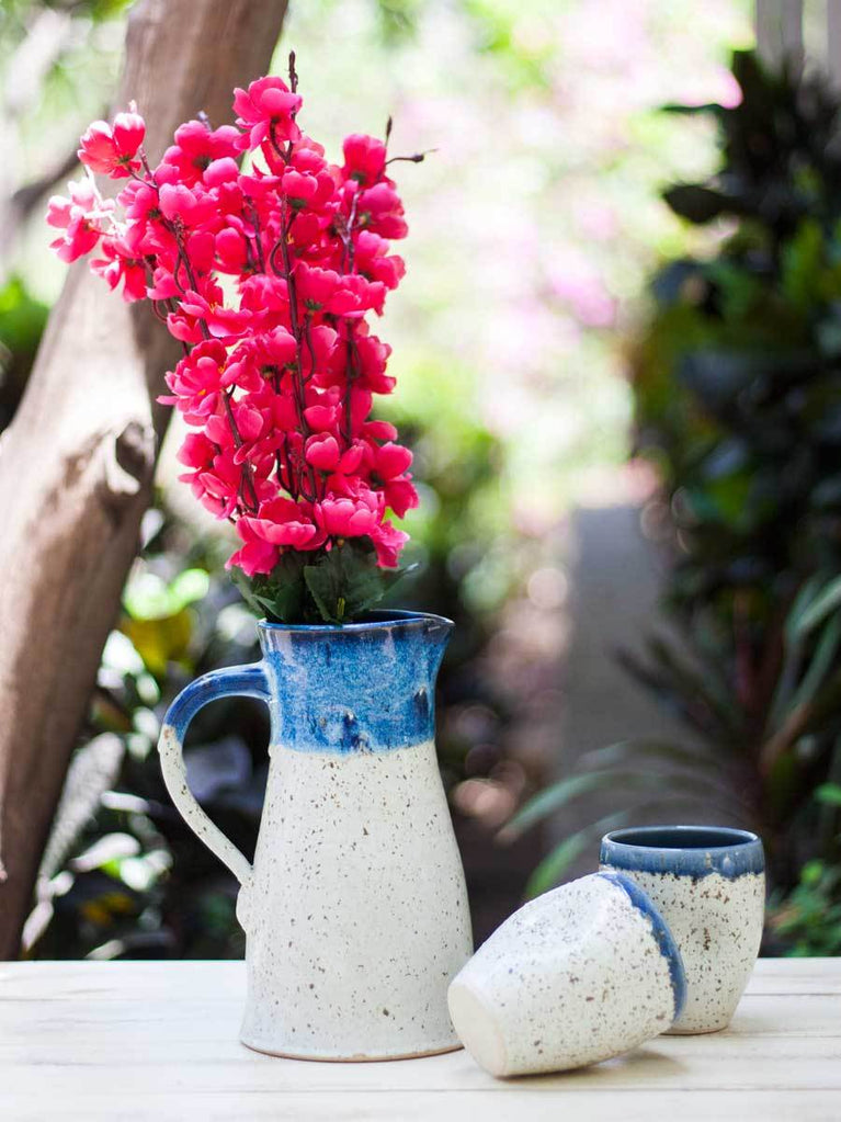 Set of 2 - Aqua Dance Dimpled Hand-Thrown Ceramic Tumbler