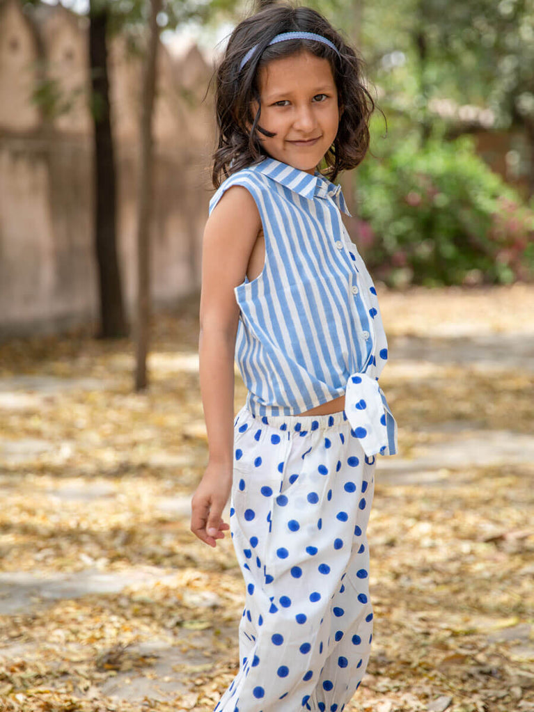 Set of 2 - Polka Dots Organic Cotton Block Printed Top & Pants Set