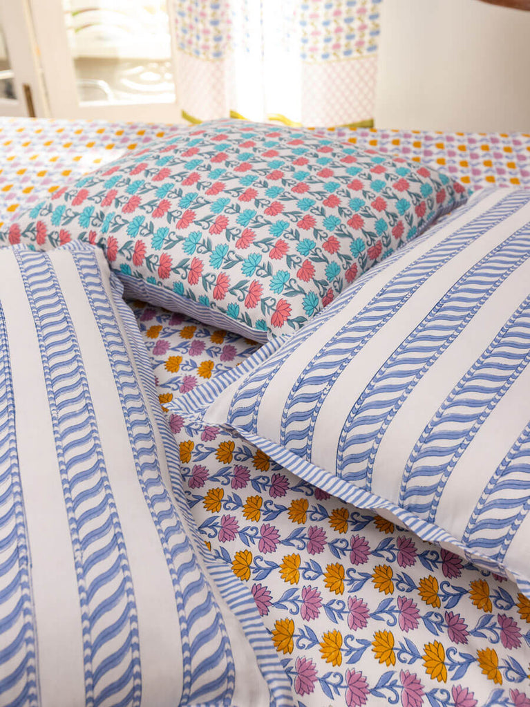 Set of 2 - Iris Block Printed Cotton Travel Set