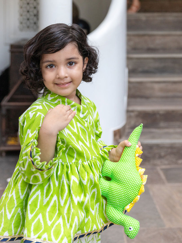 Set of 2 - Sitara Block Printed Cotton Angrakha Dhoti