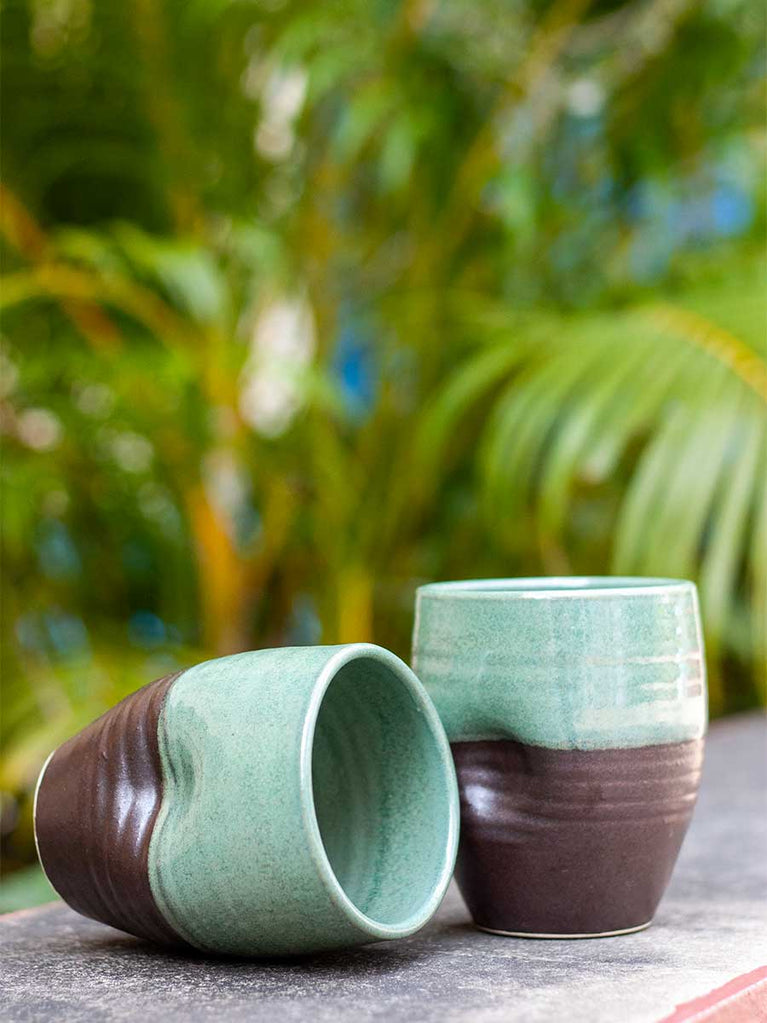 Set of 2 - Jade Imperial Dimpled Hand-Thrown Ceramic Tumbler