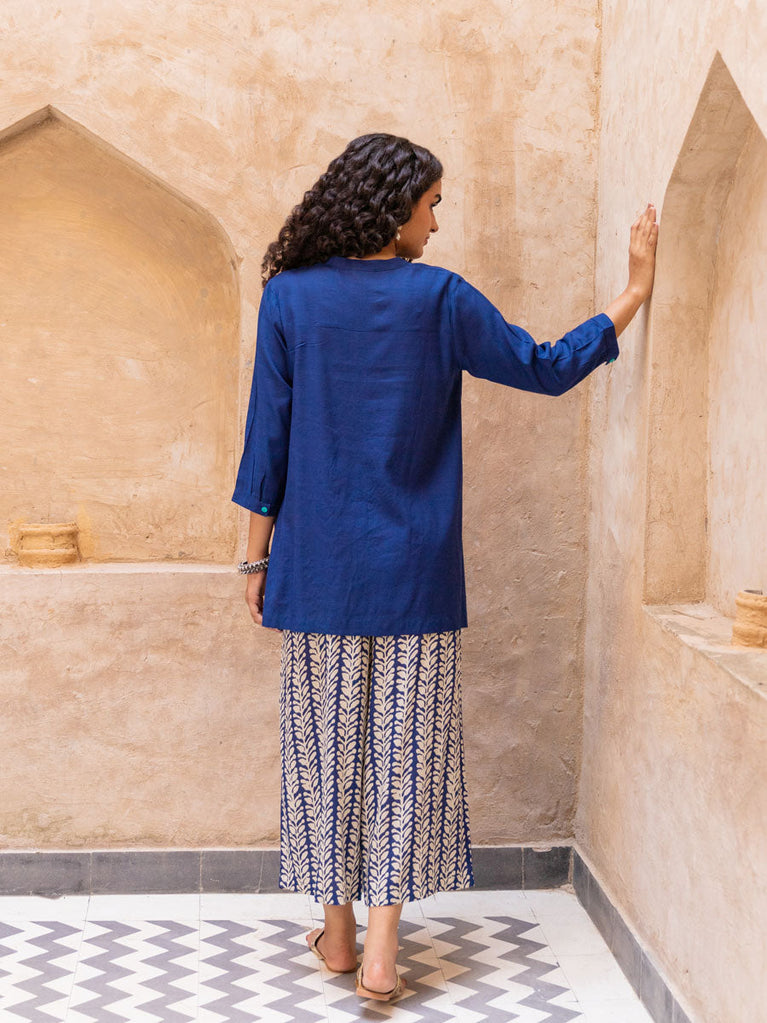 Siyahi Indigo Hand Printed Cotton Kaftan