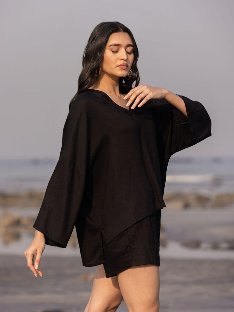 Solid Black Slub Shirt