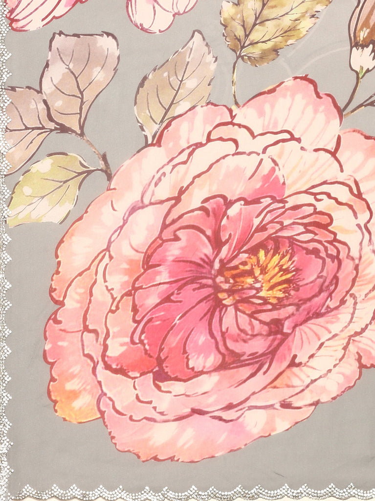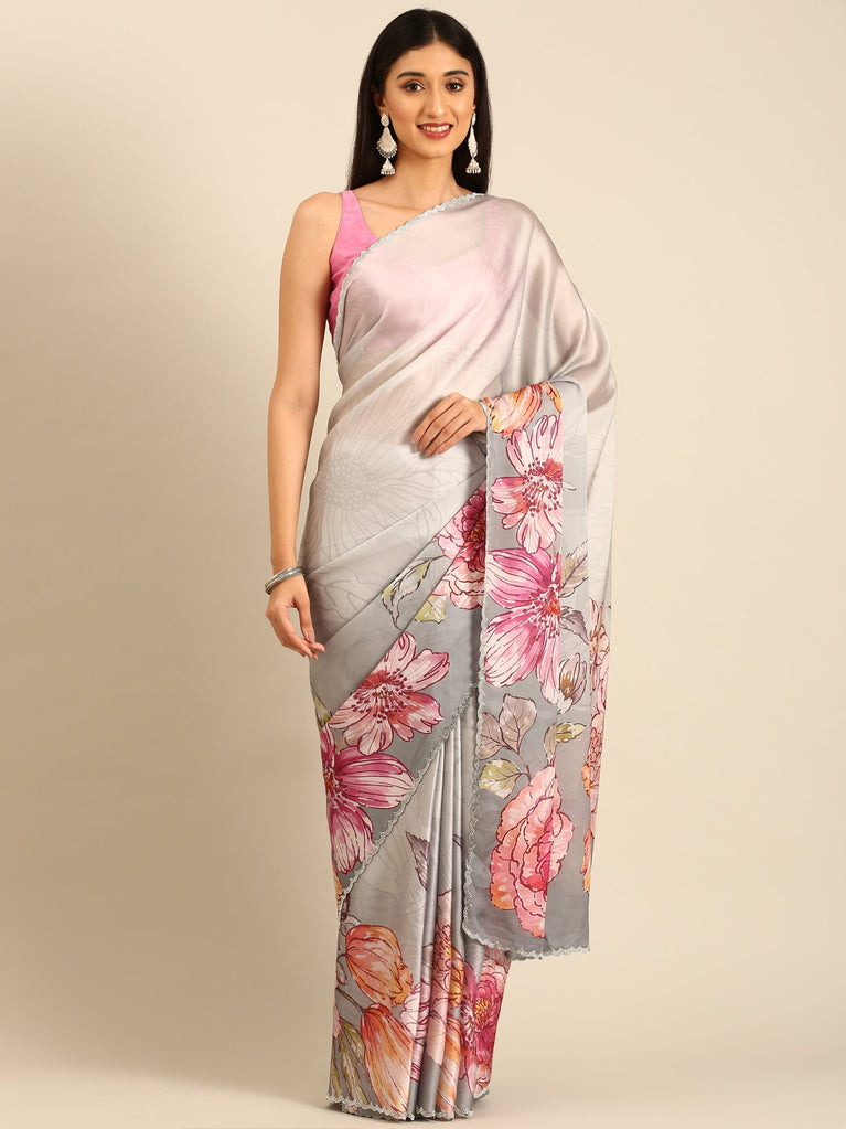 Great satin floral printed saree with Swarovski embroidery