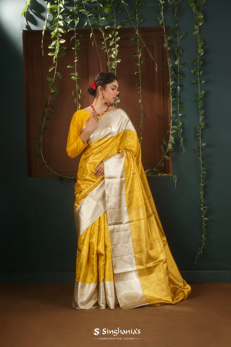 Golden Yellow Tissue Kanjivaram Saree Floral Jaal