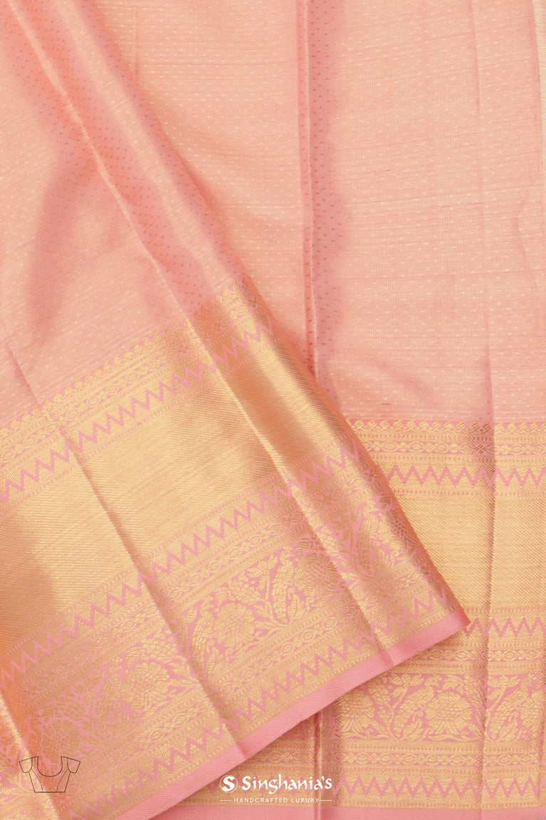 Golden Pink Tissue Kanjivaram Saree Peacock Design