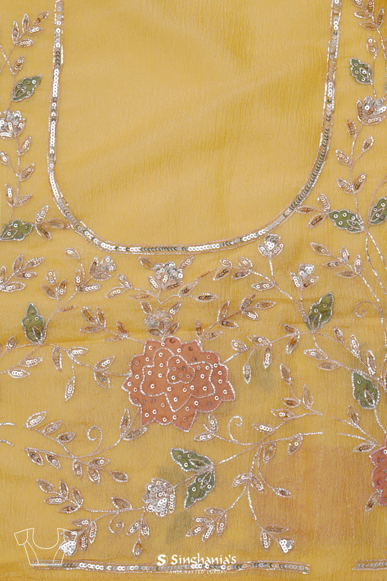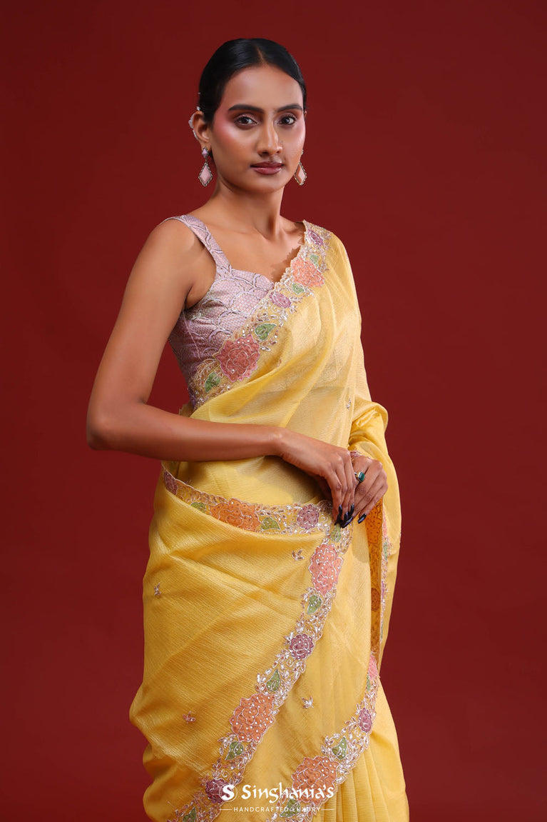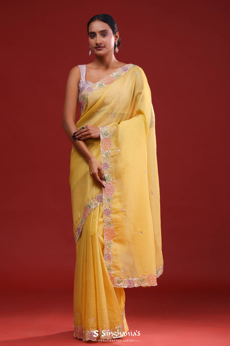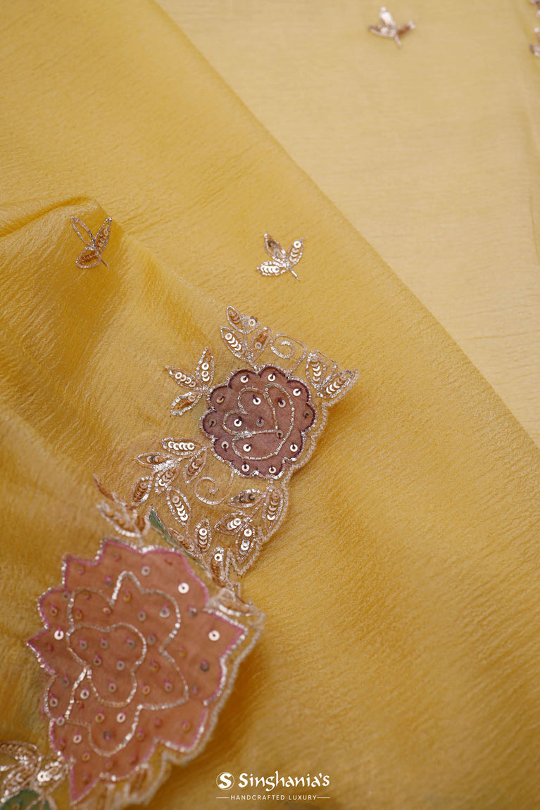 Gold Tissue Saree With Hand Embroidery And Floral Sequins Work