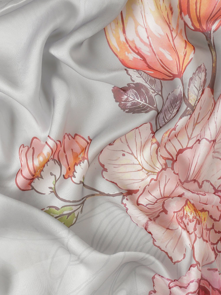 Elevate your wardrobe with this exquisite satin saree featuring a delicate floral print enhanced by intricate Swarovski embroidery. The smooth satin fabric offers a luxurious drape and subtle sheen, while the sparkling Swarovski accents add a refined elegance. Perfect for special occasions, this saree combines timeless design with expert craftsmanship to ensure you make a graceful statement.