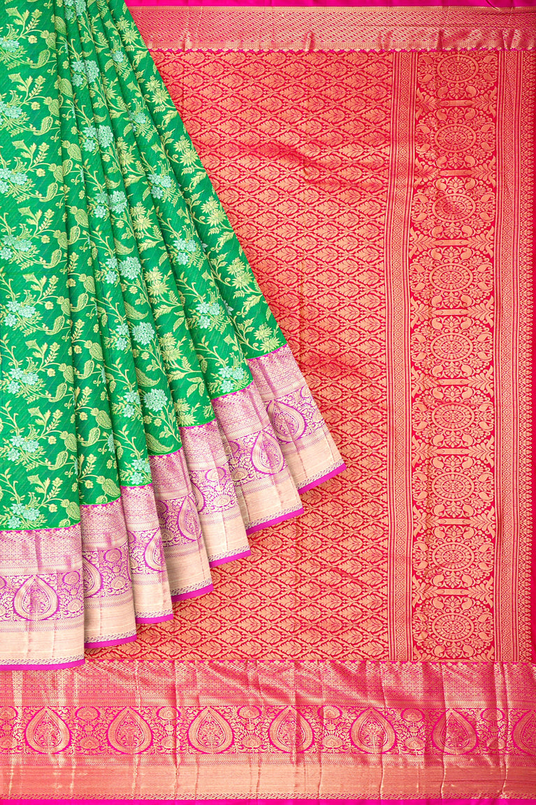 GREEN and RED FLORAL JAAL SILK Saree with KANCHIPURAM