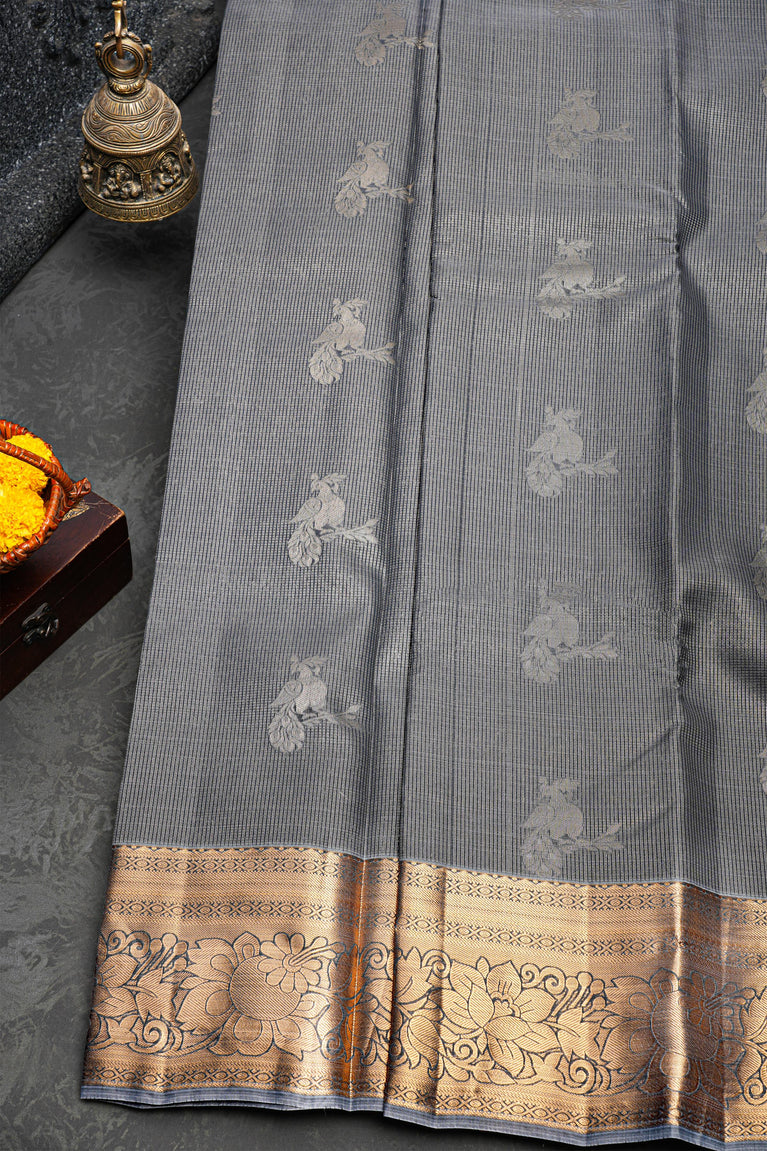 GREY and GOLD CHECKS AND BUTTIS SILK BLEND Saree with SEMI PATTU