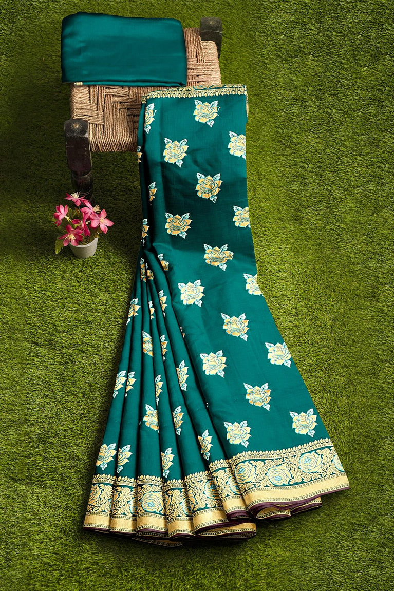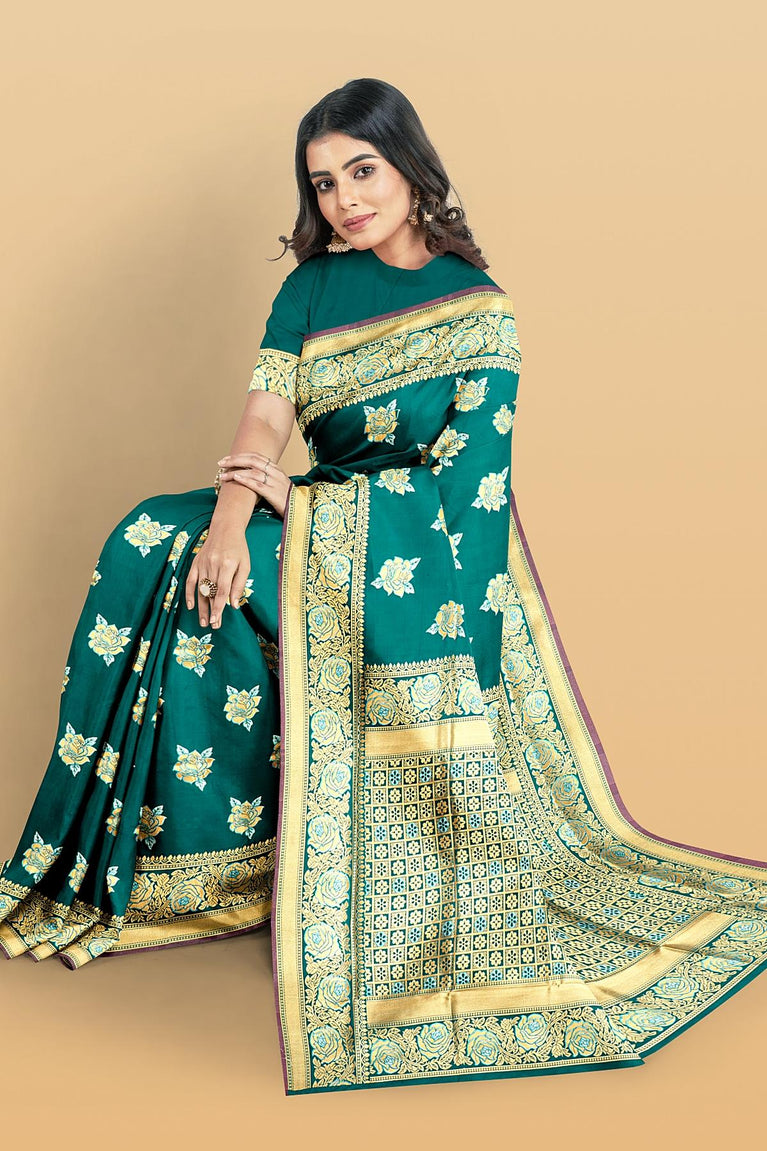 RAMA GREEN and GOLD BUTTIS SILK BLEND Saree with SEMI PATTU