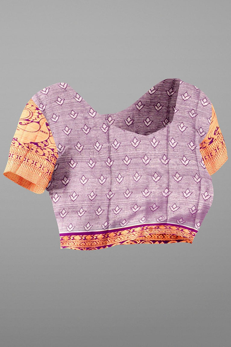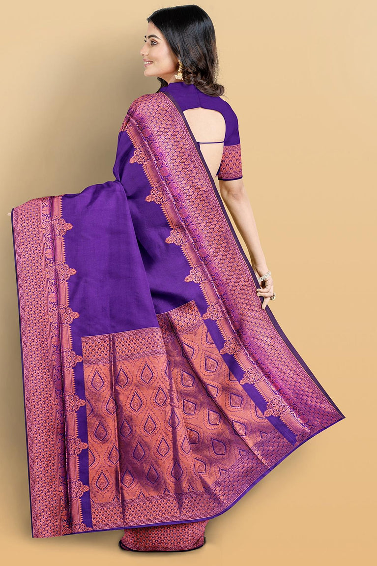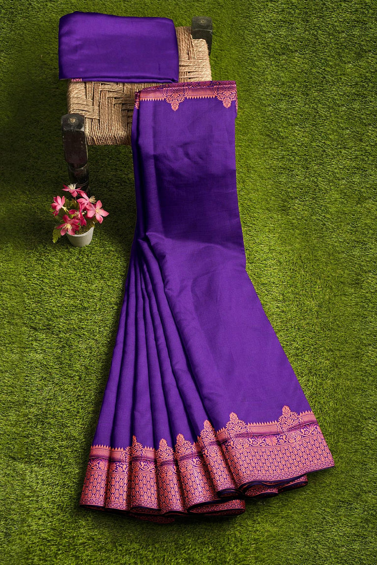 PURPLE and GOLD PLAIN SILK BLEND Saree with SEMI PATTU