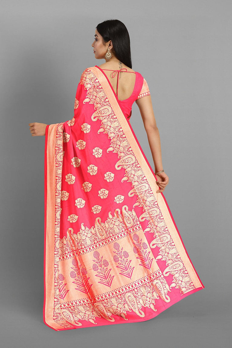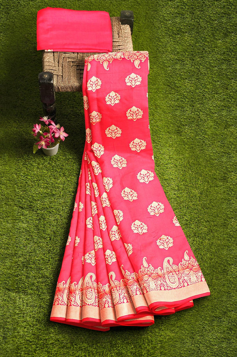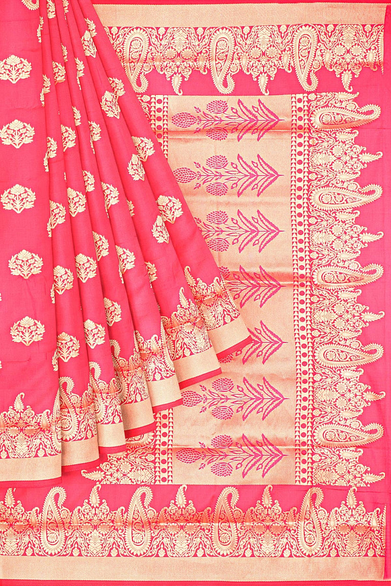 PINK and GOLD BUTTIS SILK BLEND Saree with SEMI PATTU