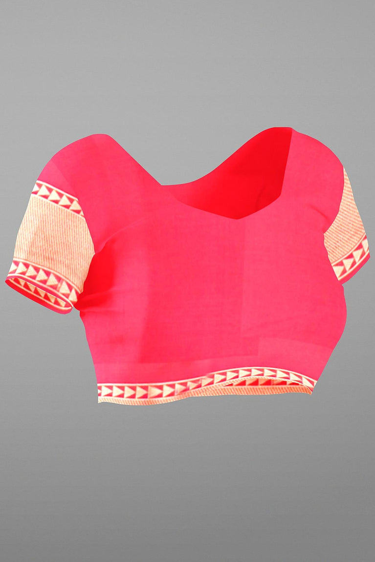 Delicate and elegant, this pink organza saree features a heavy moti jaal design on the pallu and patli, beautifully complemented by digital floral work on the border. Crafted as a stunning replica of the Sabhya Sanchi style, it’s perfect for festive occasions and celebrations. Light, graceful, and richly detailed—make a graceful statement with this exquisite saree.