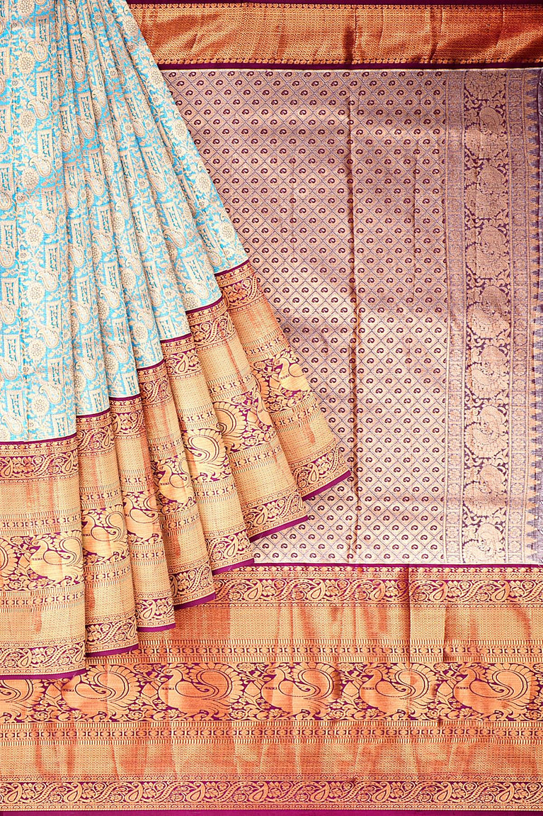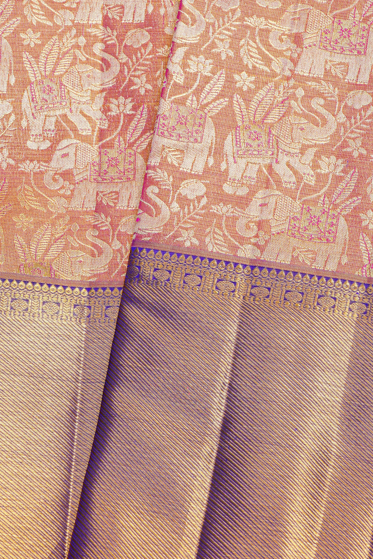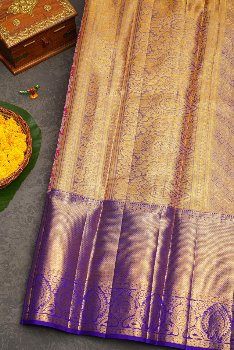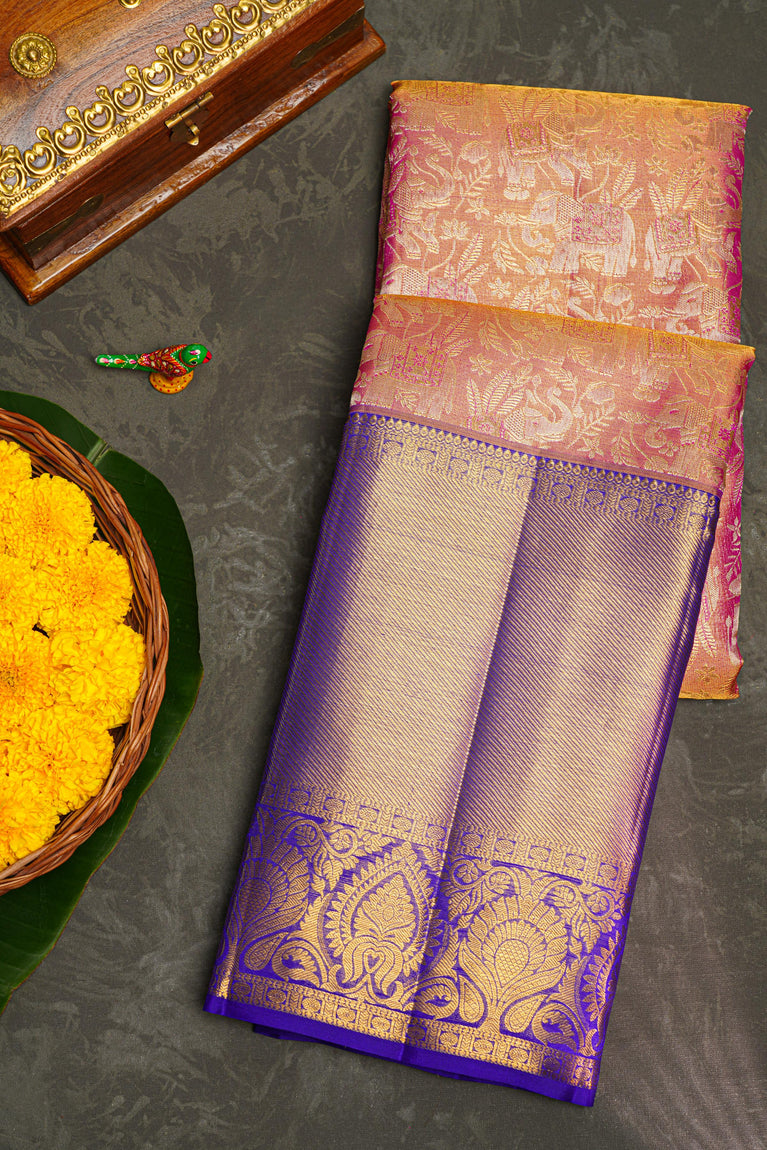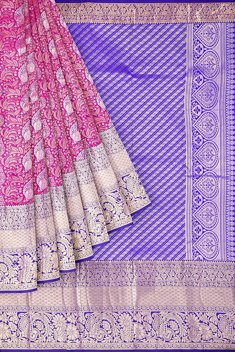 PINK and ROYAL BLUE FLORAL JAAL SILK Saree with KANCHIPURAM
