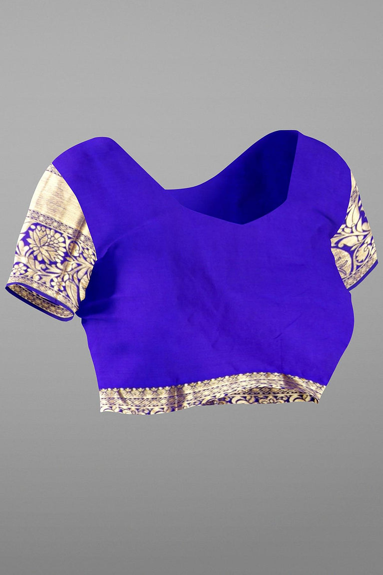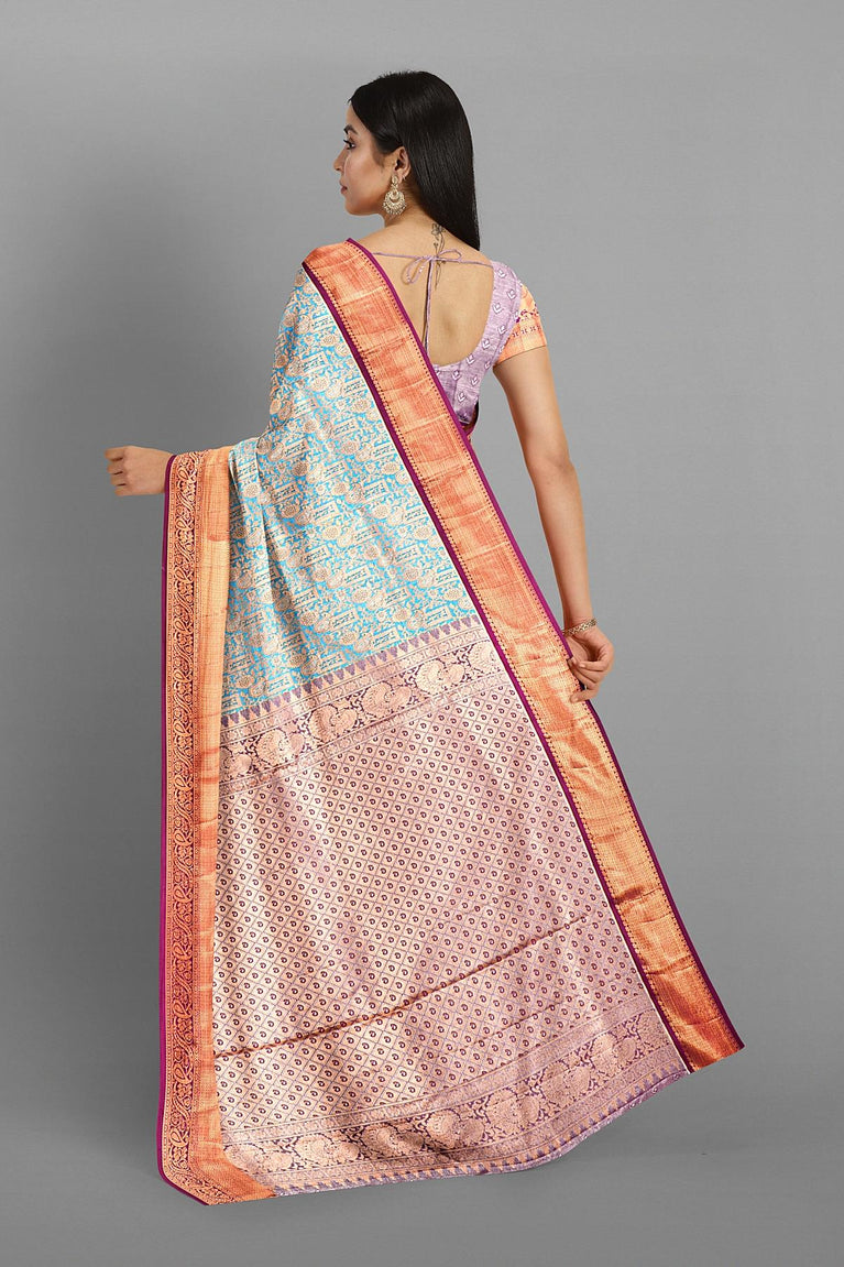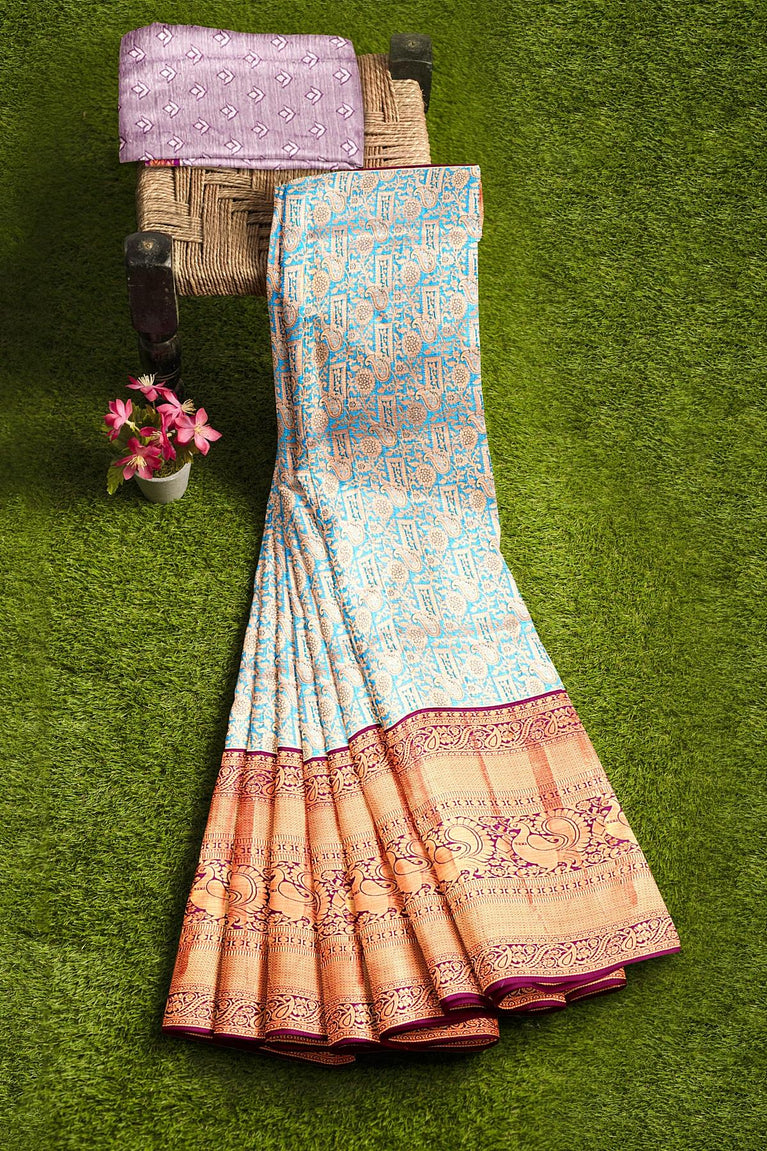 PURPLE and ROYAL BLUE FLORAL JAAL SILK BLEND Saree with SEMI PATTU