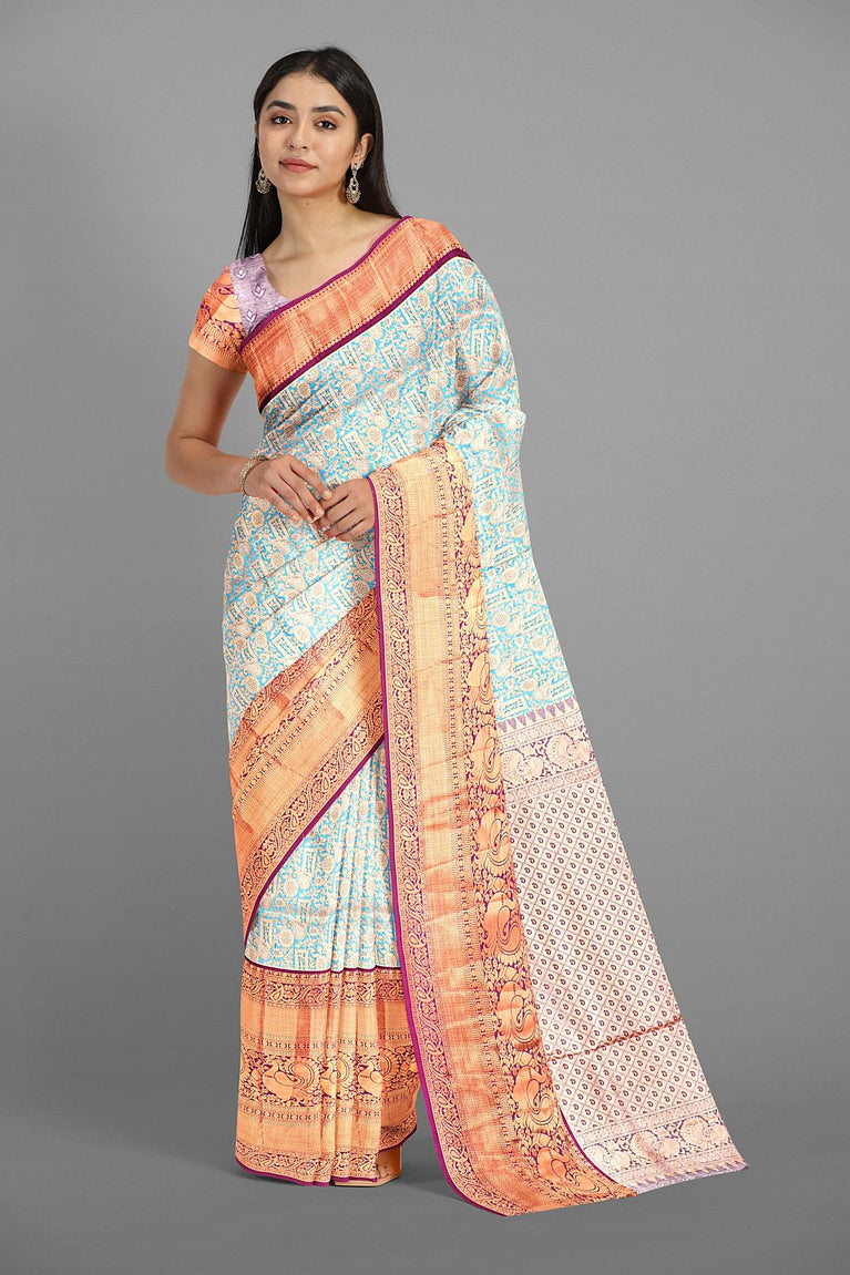 Printed Saree with Stitched Jarkan Blouse & Digital Print Pallu
