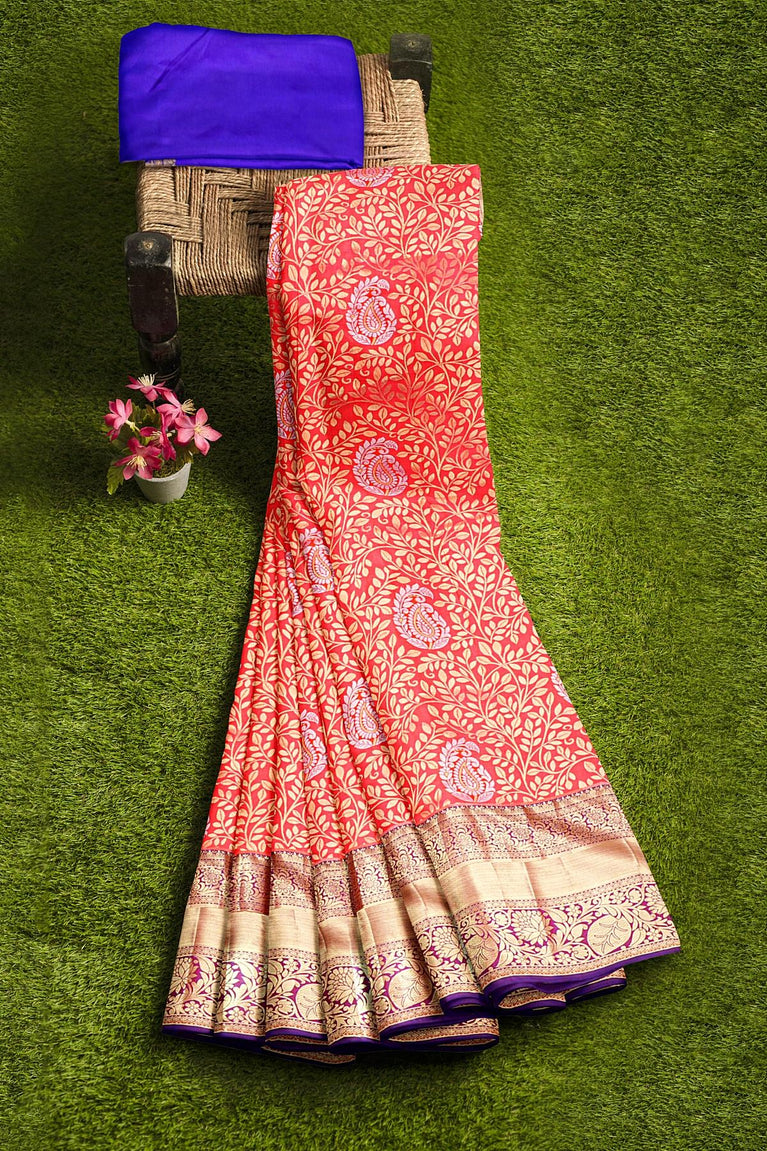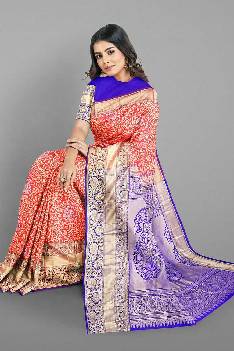 PEACH and RUST FLORALS SILK Saree with FANCY