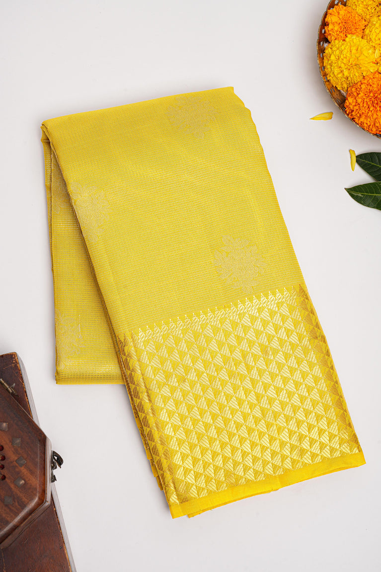 PARROT GREEN and GOLD BUTTIS SILK BLEND Saree with SEMI PATTU