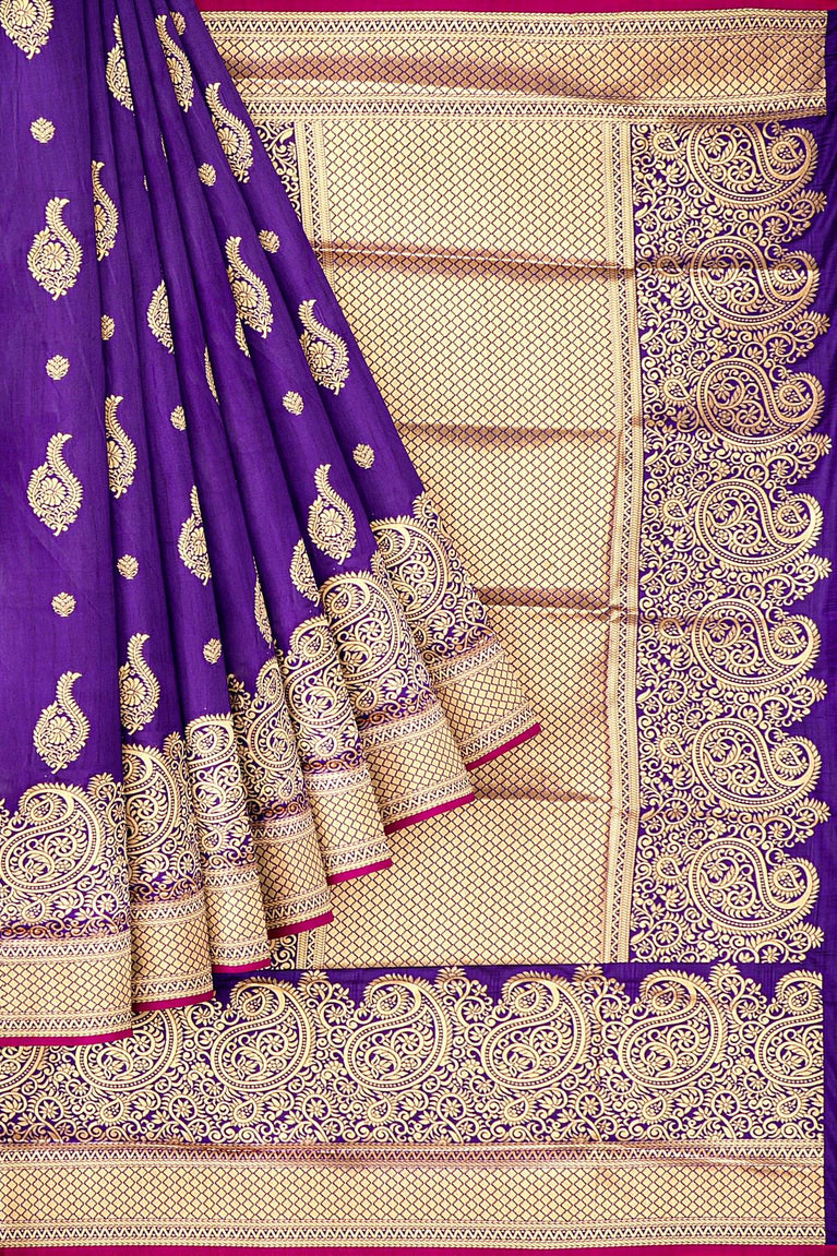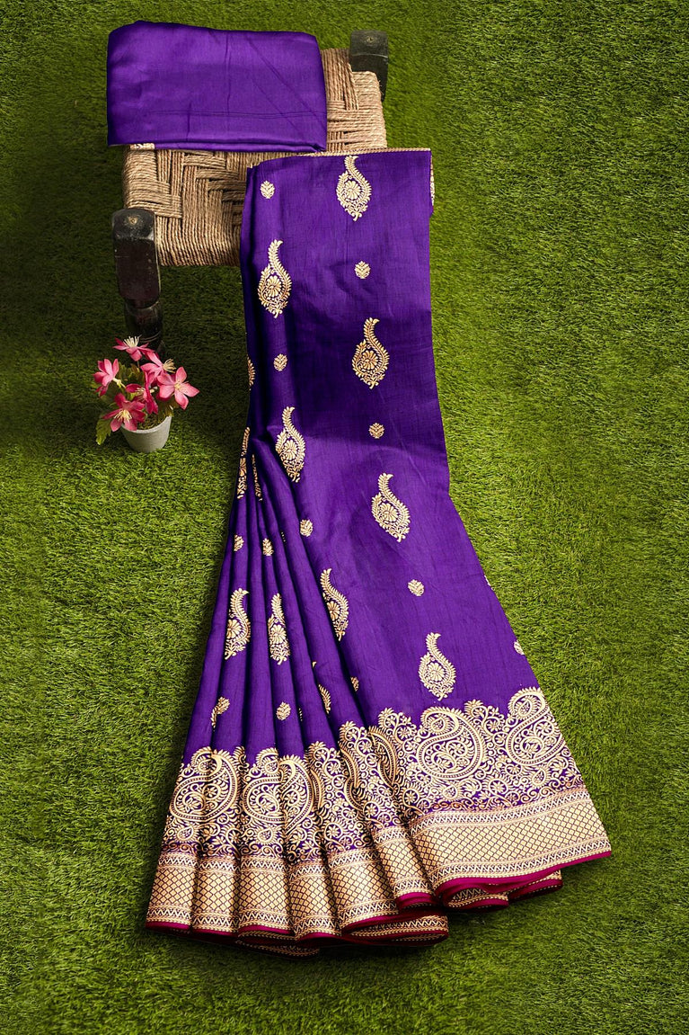 ROYAL BLUE and GOLD BUTTIS SILK BLEND Saree with SEMI PATTU