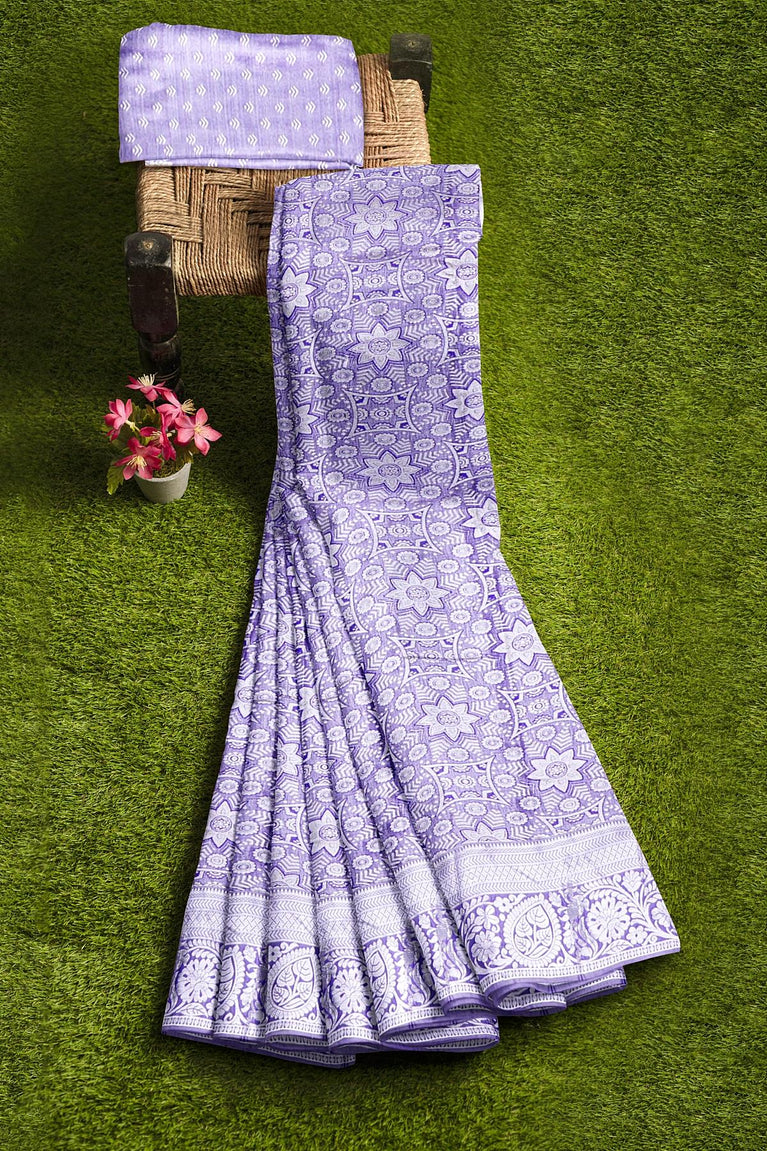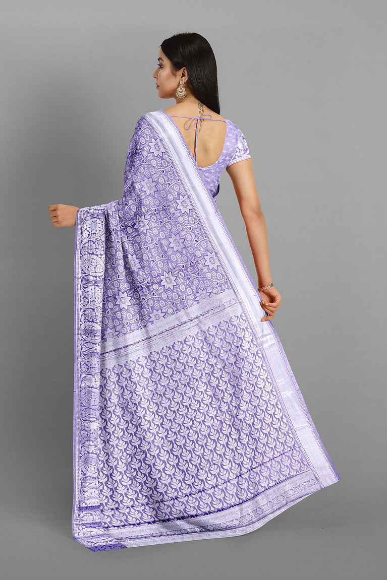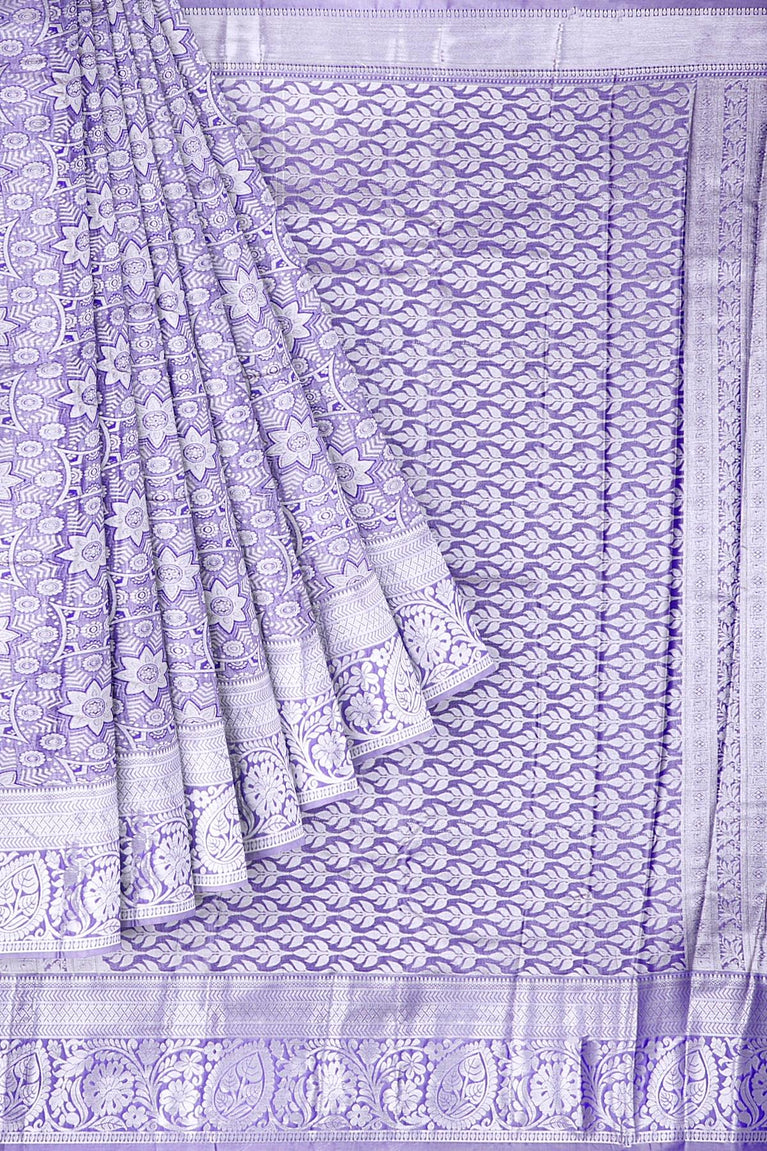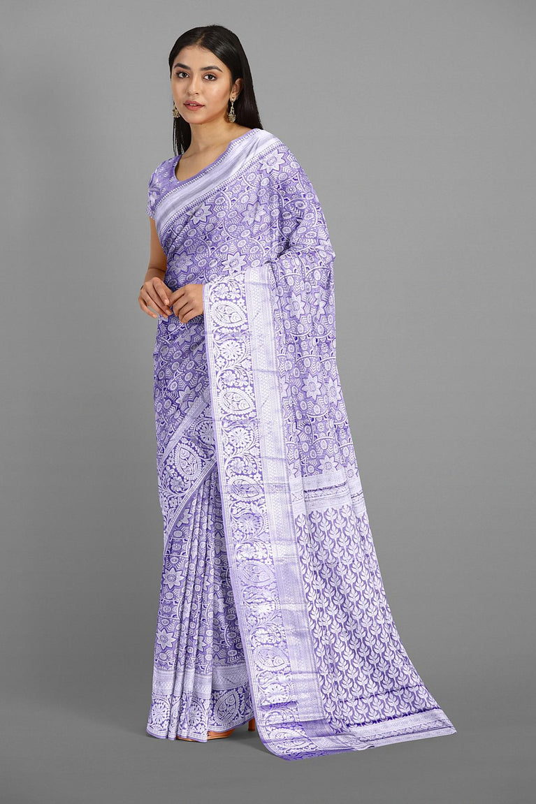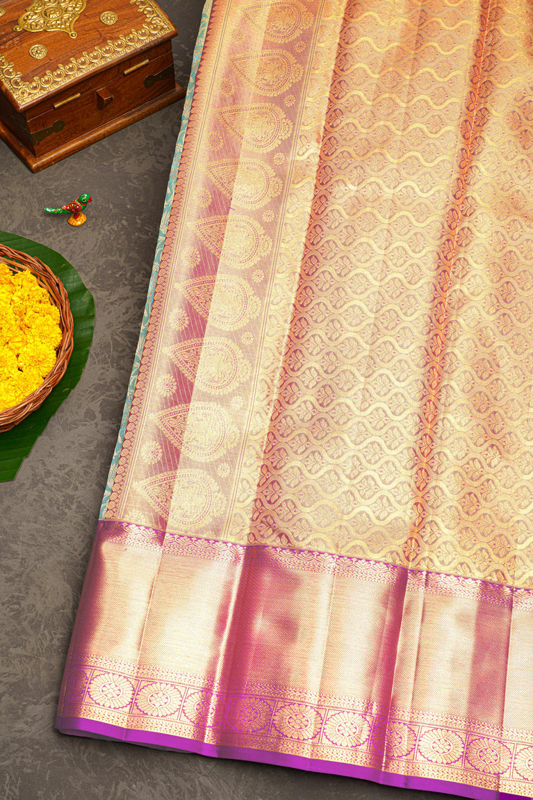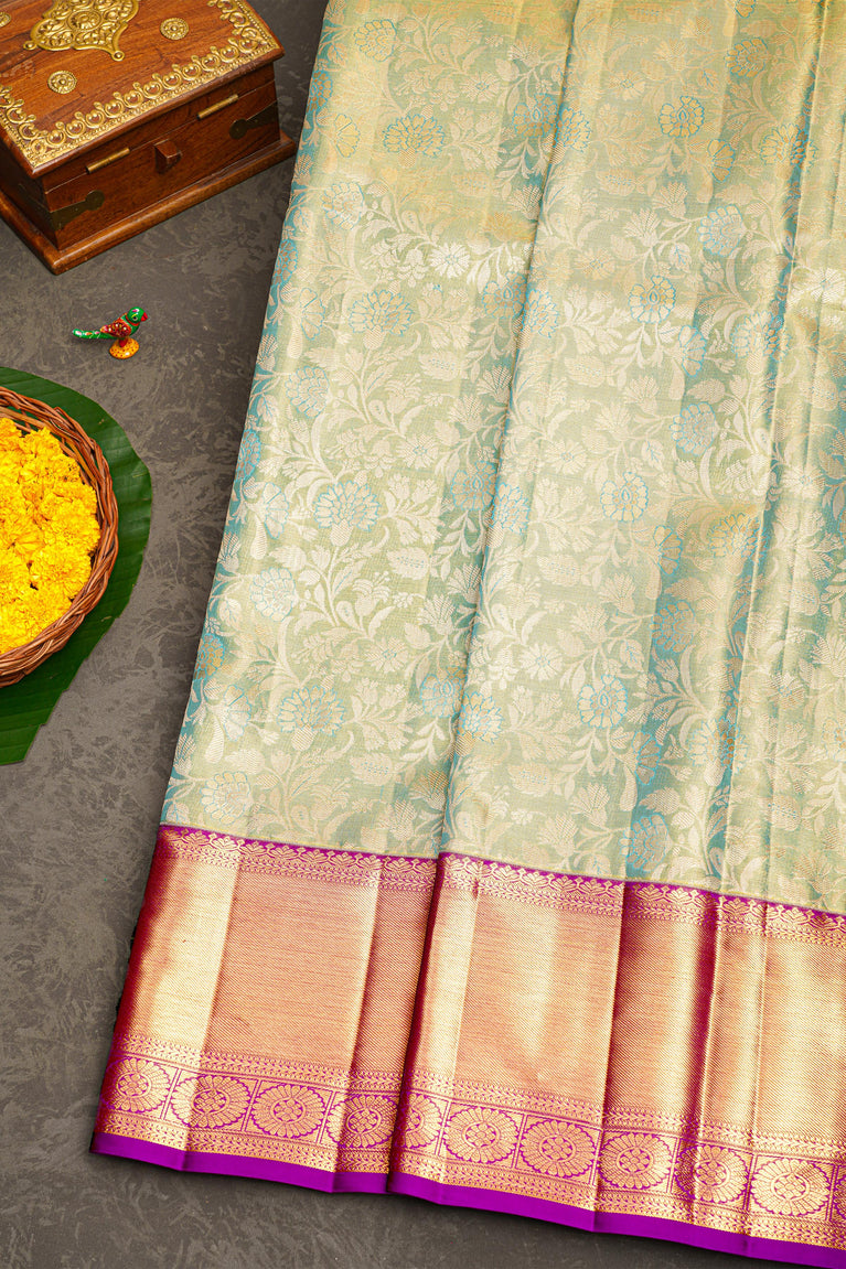 SEA BLUE and PURPLE FLORAL JAAL SILK Saree with KANCHIPURAM