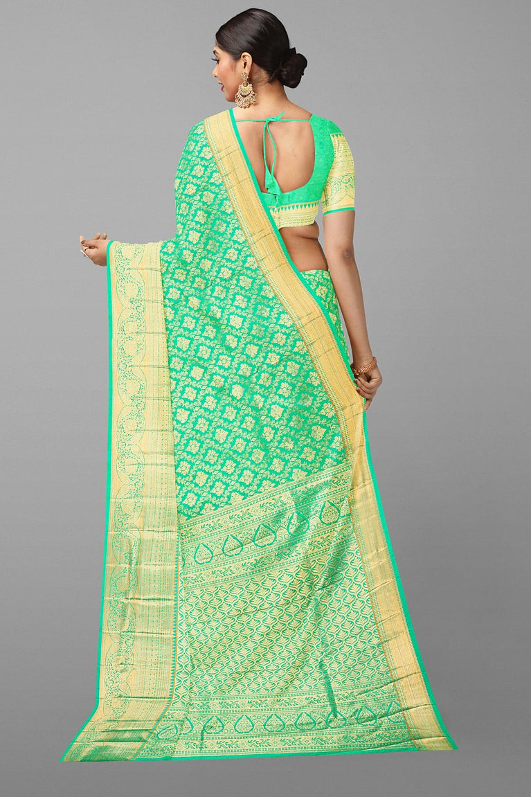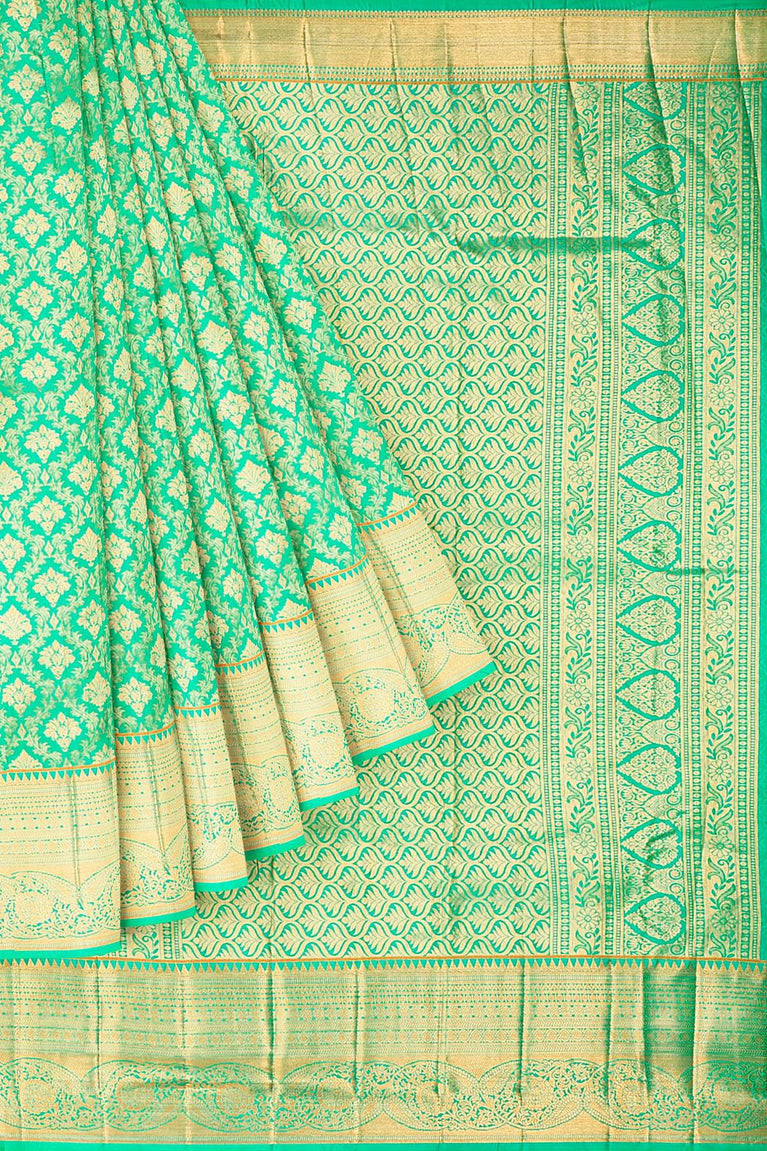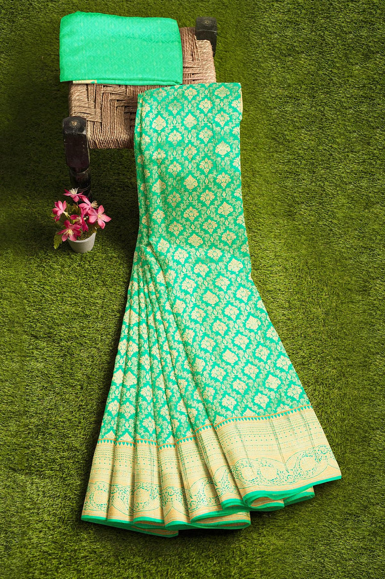 SEA GREEN and GOLD FLORAL BUTTIS SILK Saree with FANCY