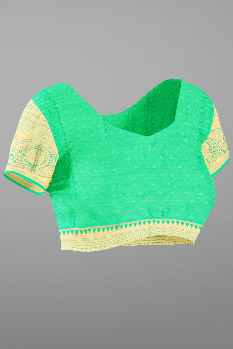 SEA GREEN and GOLD FLORAL JAAL SILK BLEND Saree with SEMI PATTU