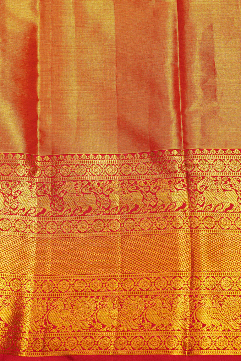 RED and GOLD FLORAL JAAL SILK Saree with KANCHIPURAM