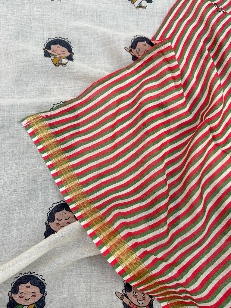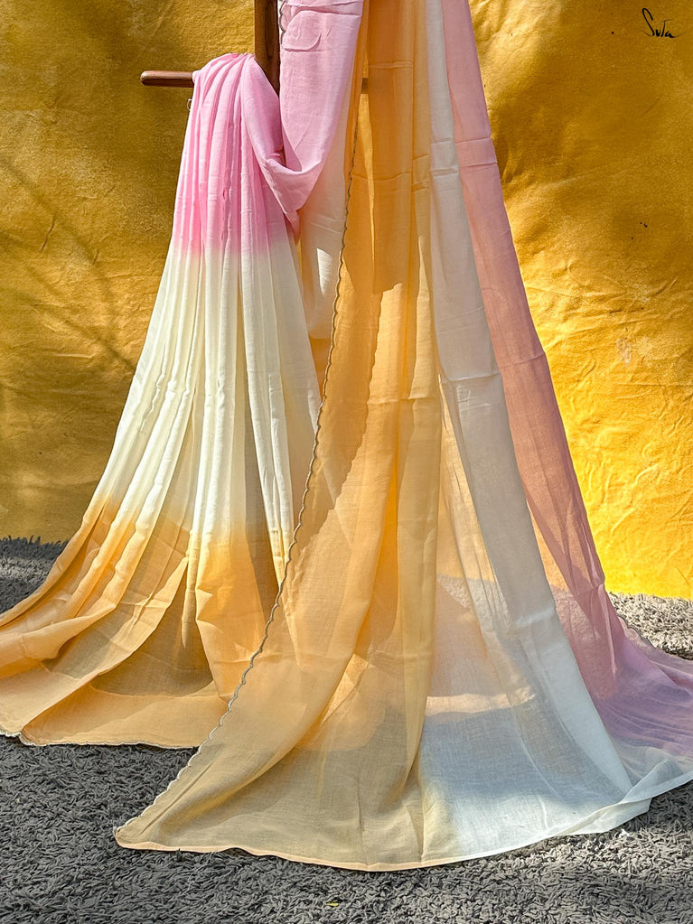 The mul cotton is what we call ˜made in heaven at Suta. Known in West Bengal as mul mul, the fabric is buttery soft and delicately beautiful. The weave of this fabric is very fine, and this lends a very fluid texture to it that makes draping it a breeze. It is truly like a hug that wraps you in its love!