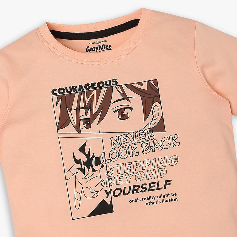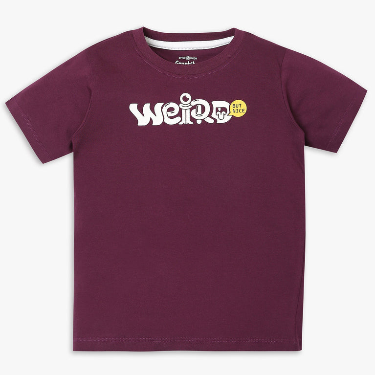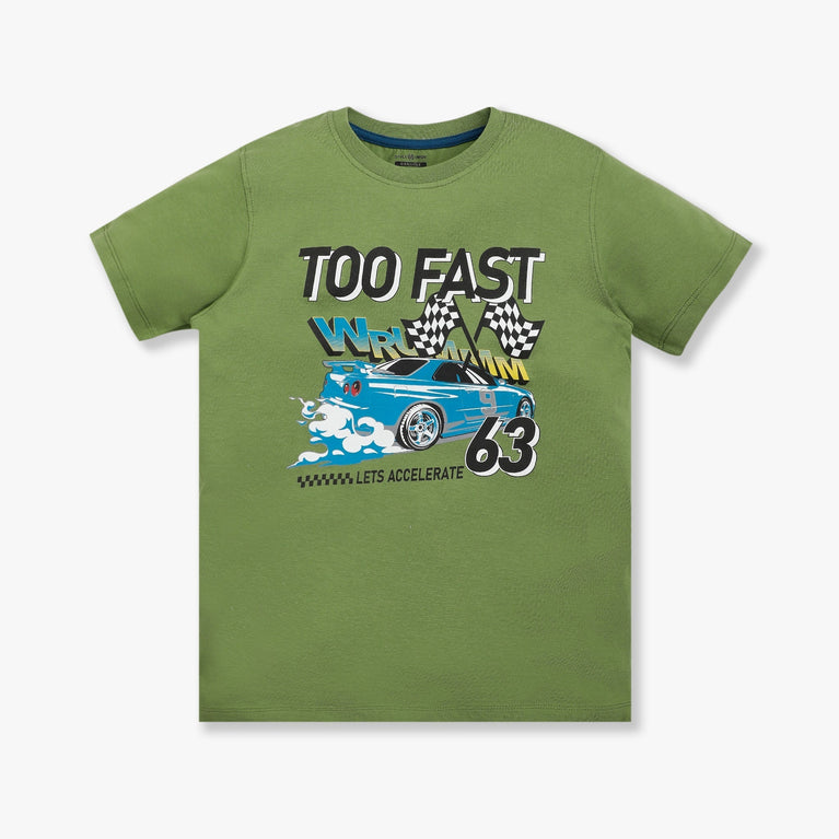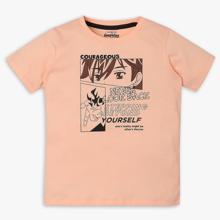 This graphic pattern t-shirt has a crew neck and half sleeve. Made from cotton, your kid's feel comfortable wearing the product.