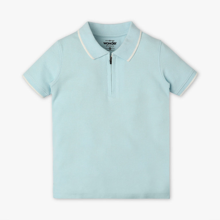 Boys Solid Polo Neck Wonder Reverse Coil Zipper T-Shirt
