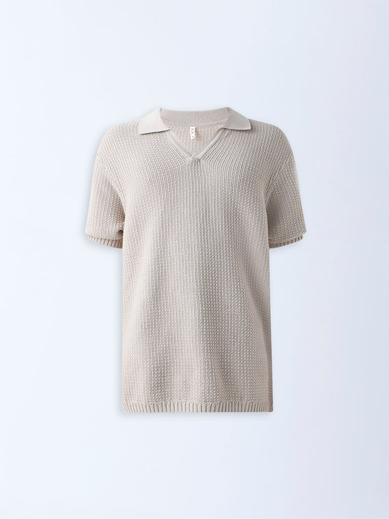 ETA Beige Knit-Textured Relaxed-Fit Polo T-Shirt