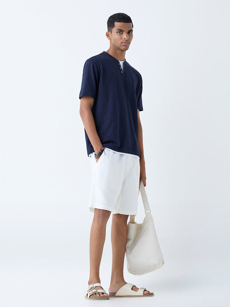 ETA Navy Solid Relaxed-Fit Cotton T-Shirt