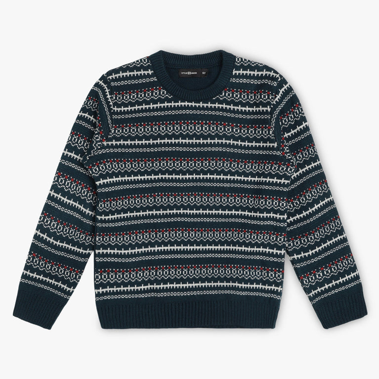 Wrap your little one in warmth and style with our Boys Crew Neck Sweater. Crafted from 100% acrylic, this sweater offers a cozy embrace that is perfect for chilly days. The structured knit pattern adds a touch of sophistication, making it a versatile piece for both casual outings and special occasions.
