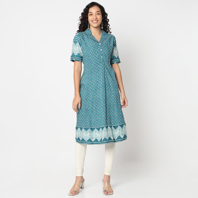 A-Line Printed Knee Length V-Neck Flared Kurta