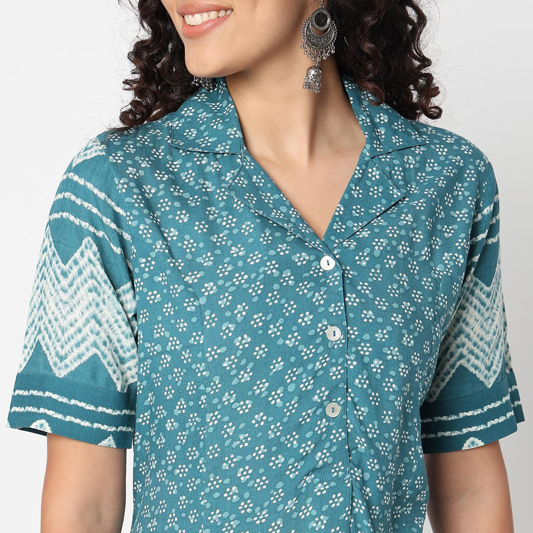 These fusion sets - ctop & bottom theme, boxy fit top has crop top length. Made from viscose, it is soft and comfortable to wear.