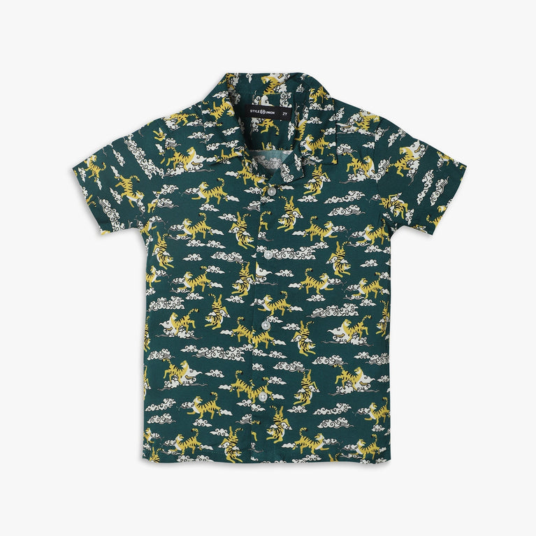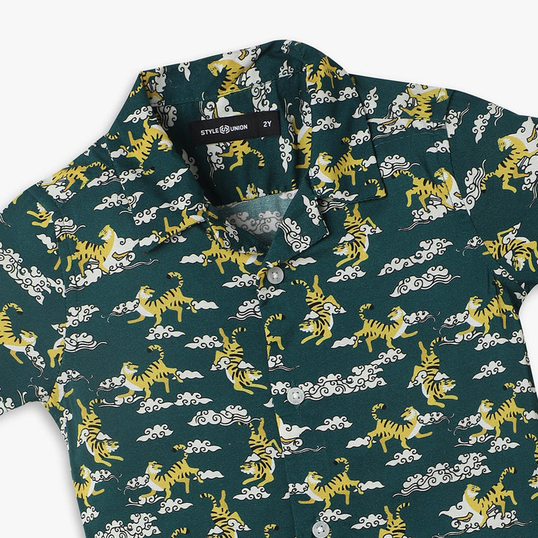 Boys Relaxed Fit Printed Half Sleeve Retreat Shirt