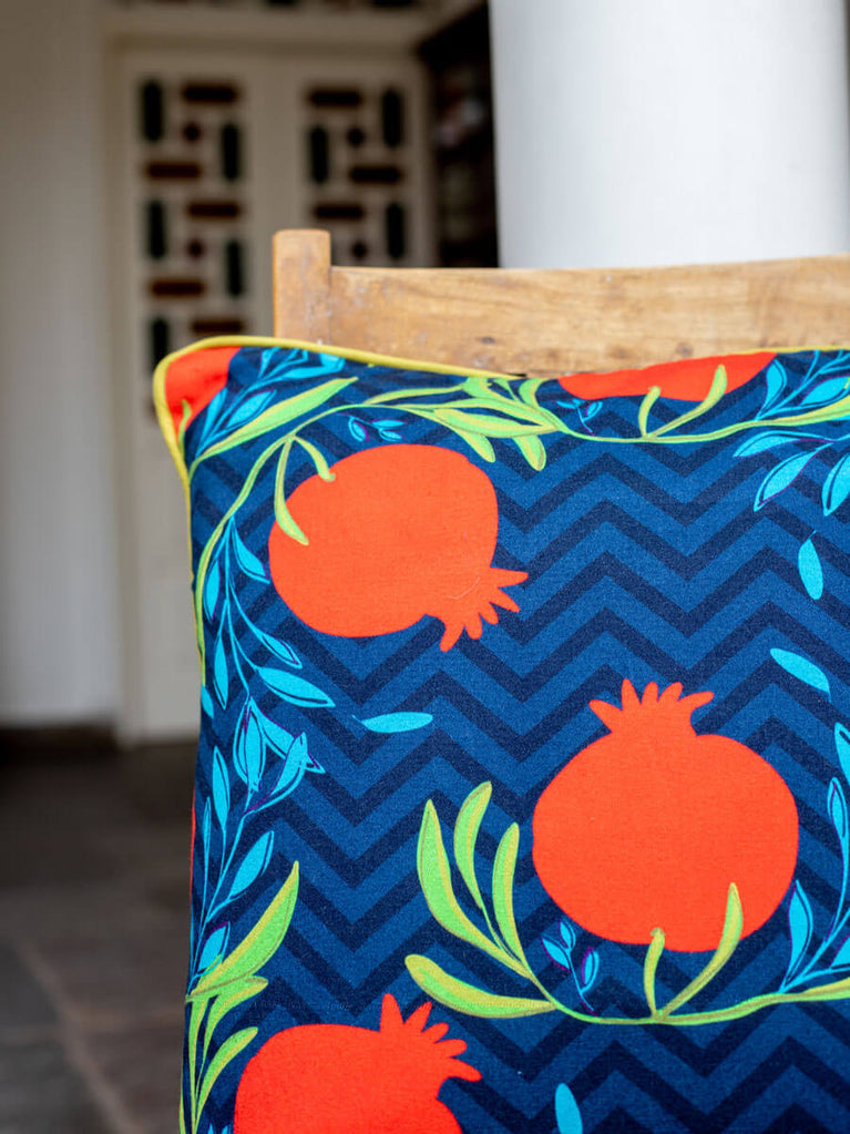 Fruits of Paradise Block Printed Cotton Cushion Cover - 16 Inch