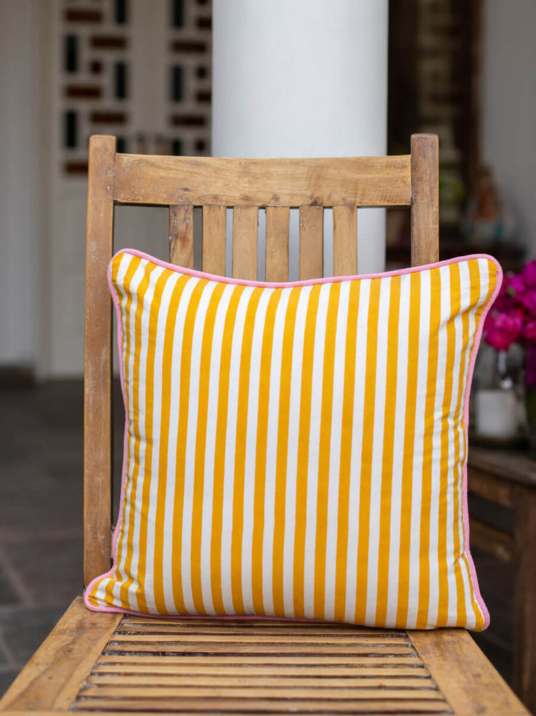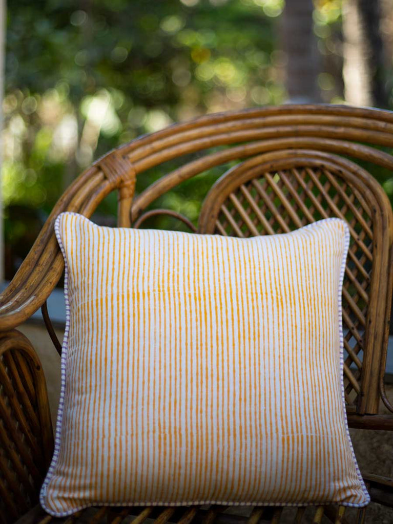 Fields of Sunflower Block Printed Cotton Cushion Cover - 16 Inch