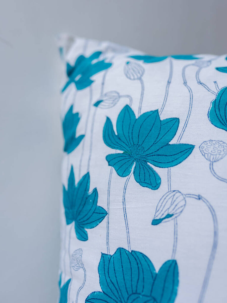 Indigo Block Printed Cotton Cushion Cover - 12 Inch