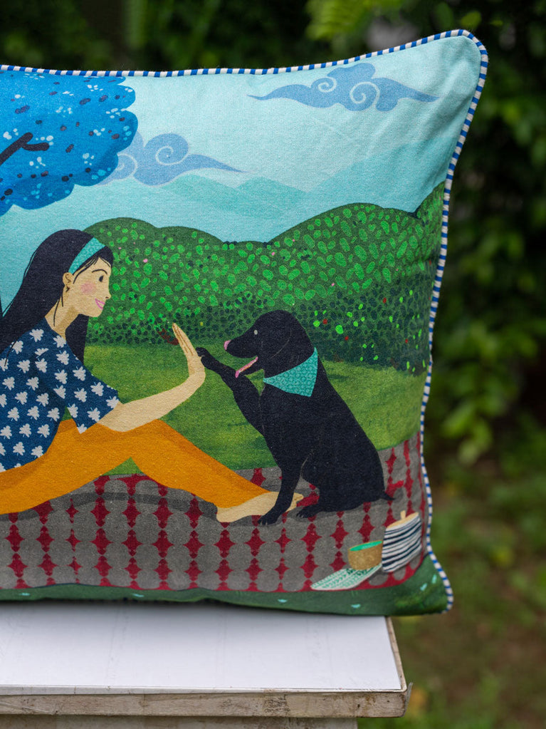 Heavenly Ride Block Printed Cotton Cushion Cover - 12 Inch