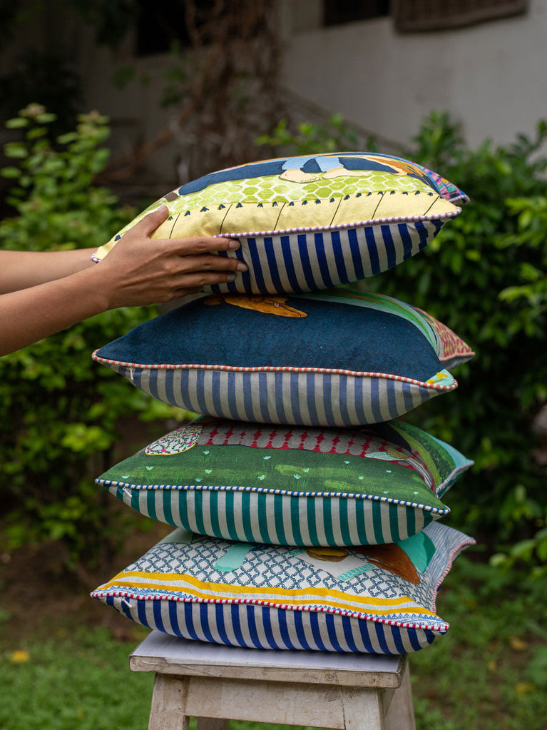Mahtab Block Printed Cotton Cushion Cover - 12 Inch