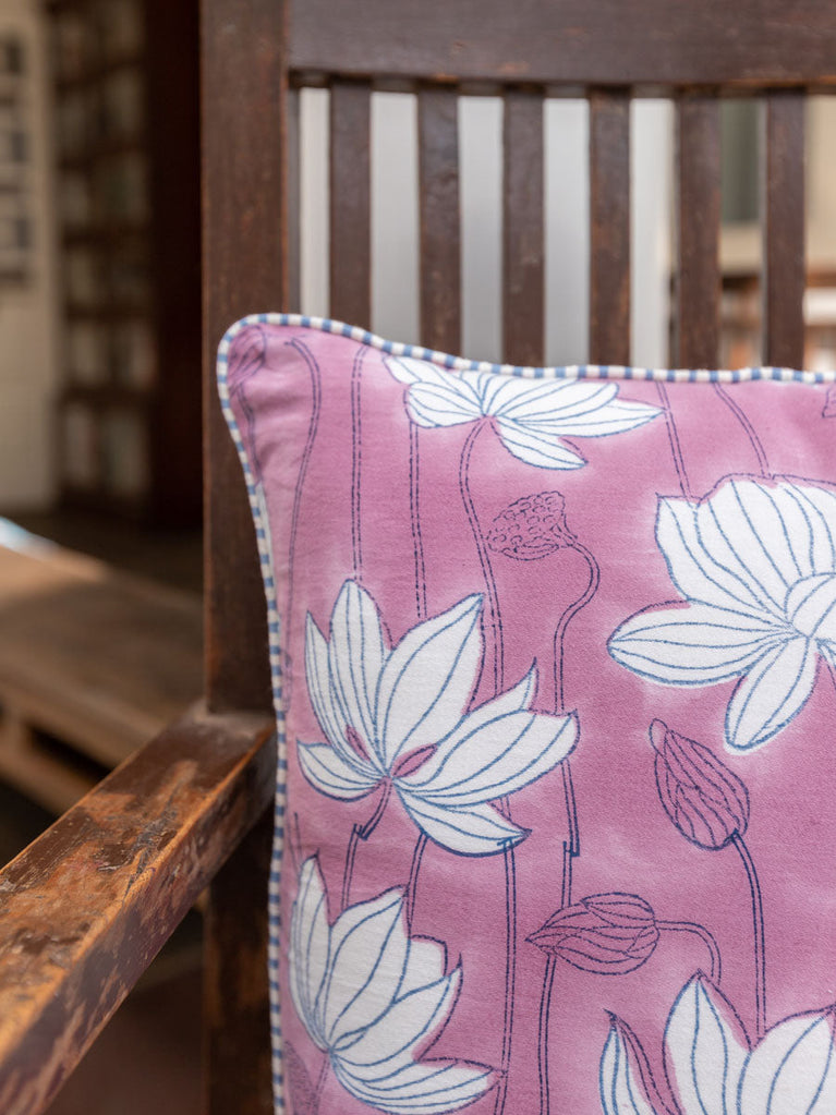 Mystical Lotus Block Printed Cotton Cushion Cover - 16 Inch