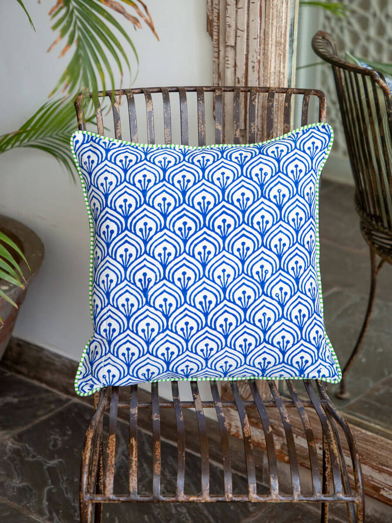 Pankh Block Printed Cotton Cushion Cover - 16 Inch