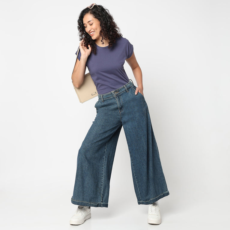 These solid pattern regular fit trousers has ankle length, high rise waist. Made from polyester, it is soft and comfortable to wear.
