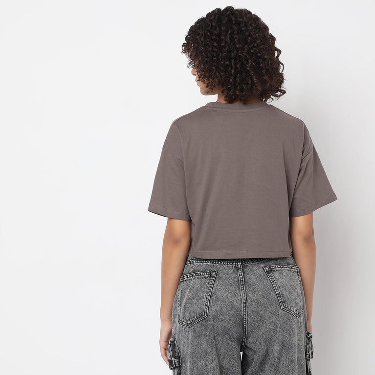 Boxy Fit Printed Short Sleeve Crop T-Shirt