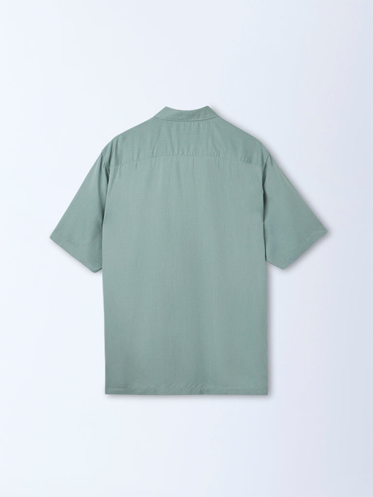 Ascot Teal Colour-Blocked Relaxed-Fit Shirt