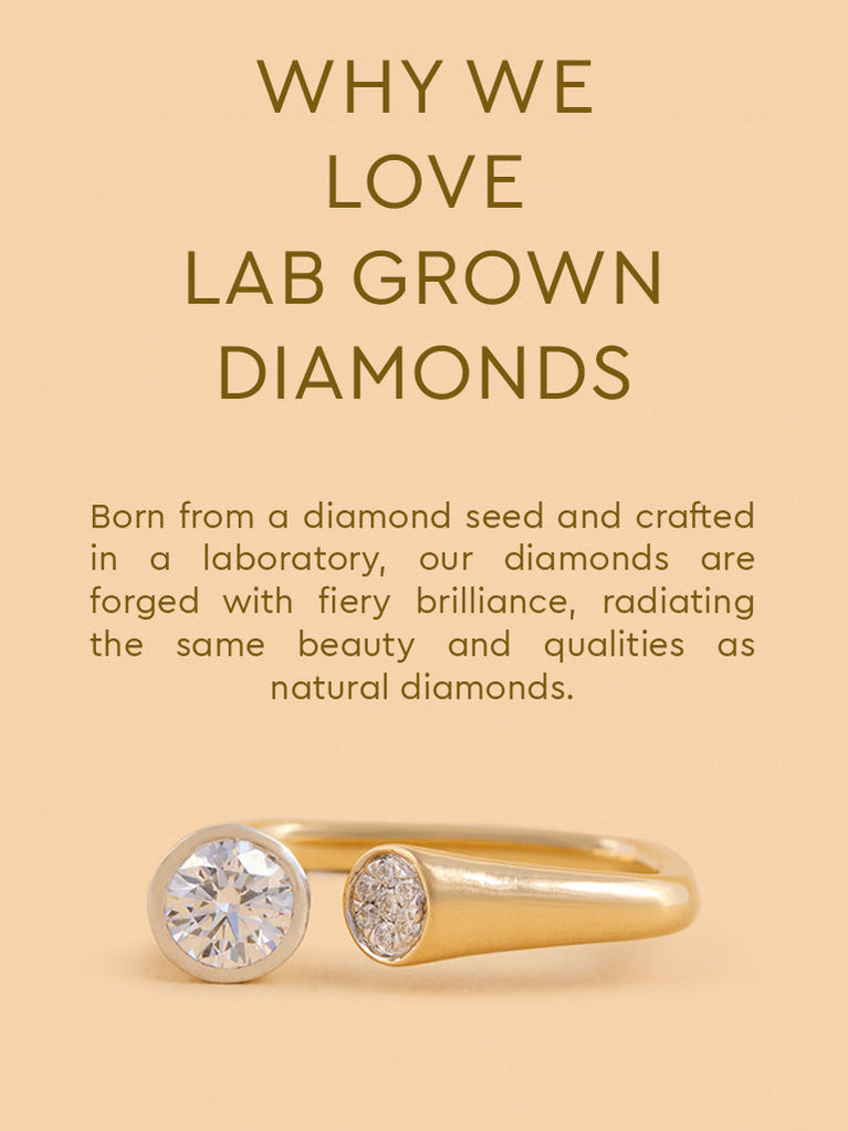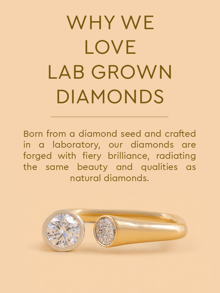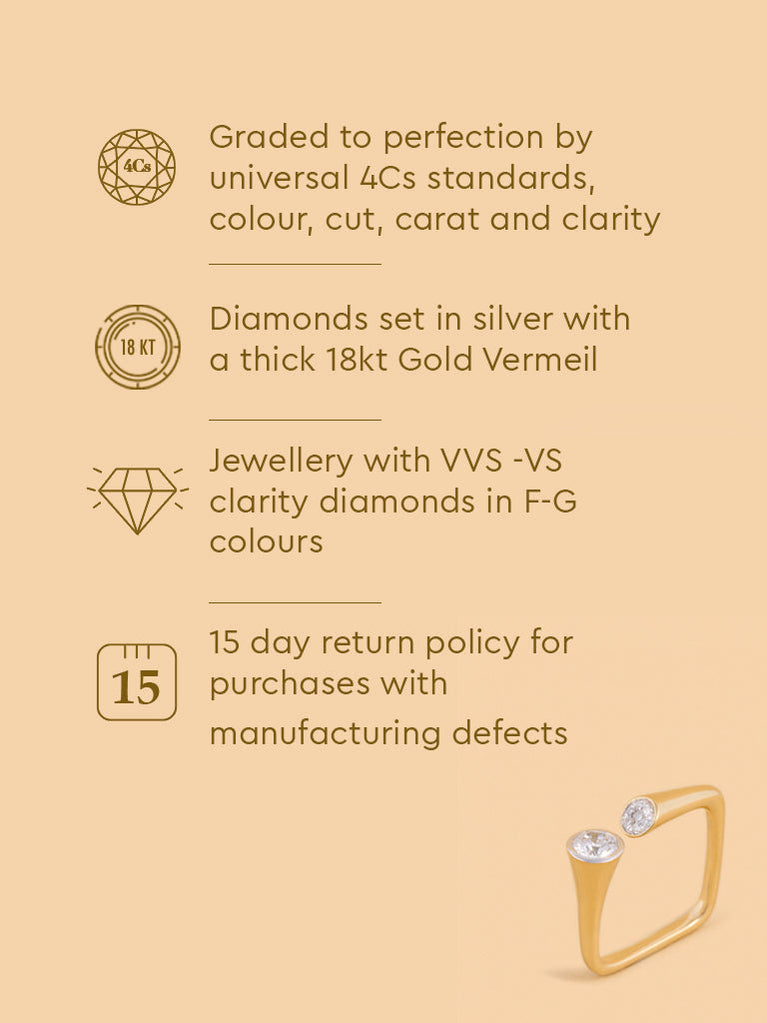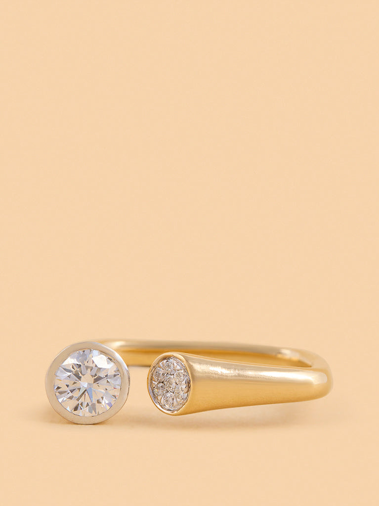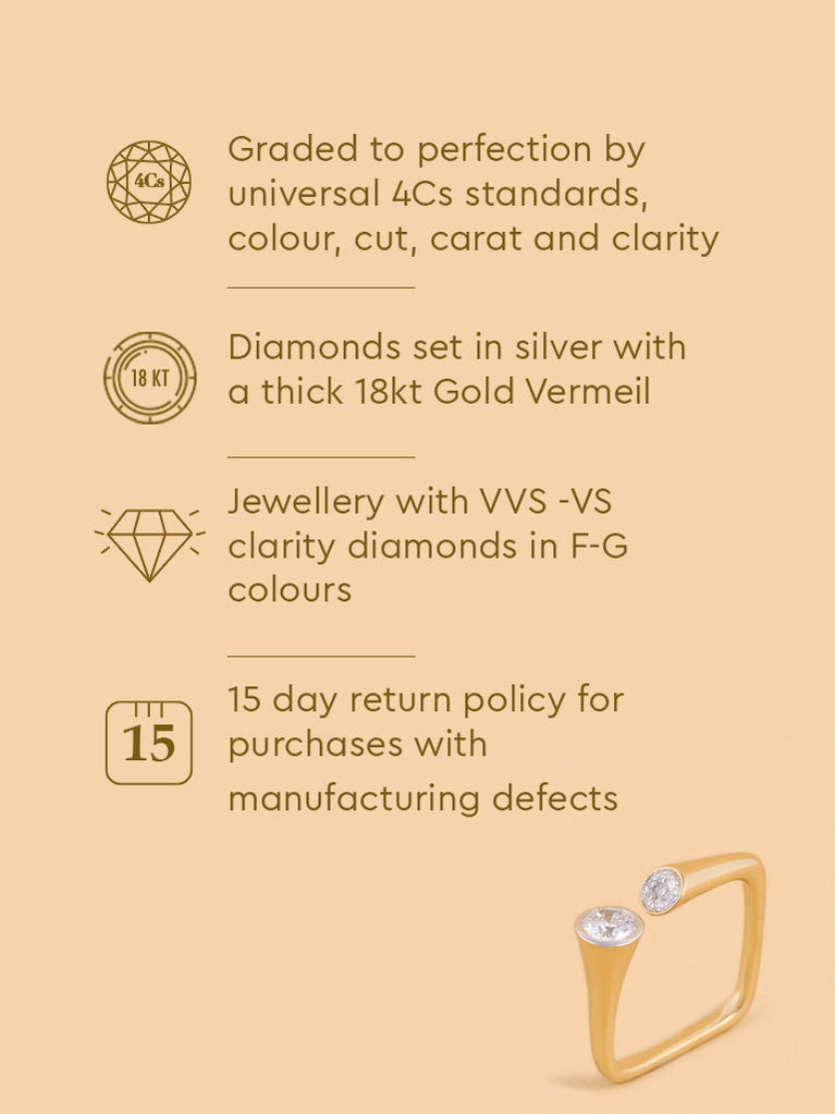 Enjoy the allure of this juxtaposed lab diamond ring with a solitaire & diamond cluster. Crafted in gold vermeil, it offers a unique design that beautifully showcases the charm and brilliance of the diamond.