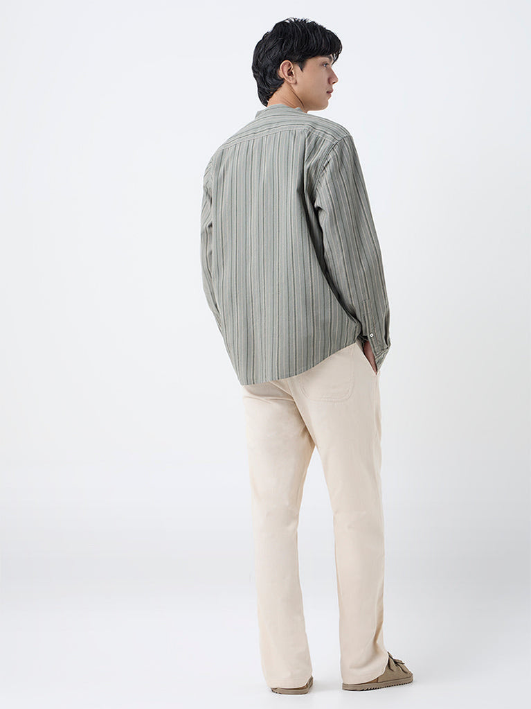 ETA Beige Pinstriped Relaxed-Fit Mid-Rise Cotton Trousers